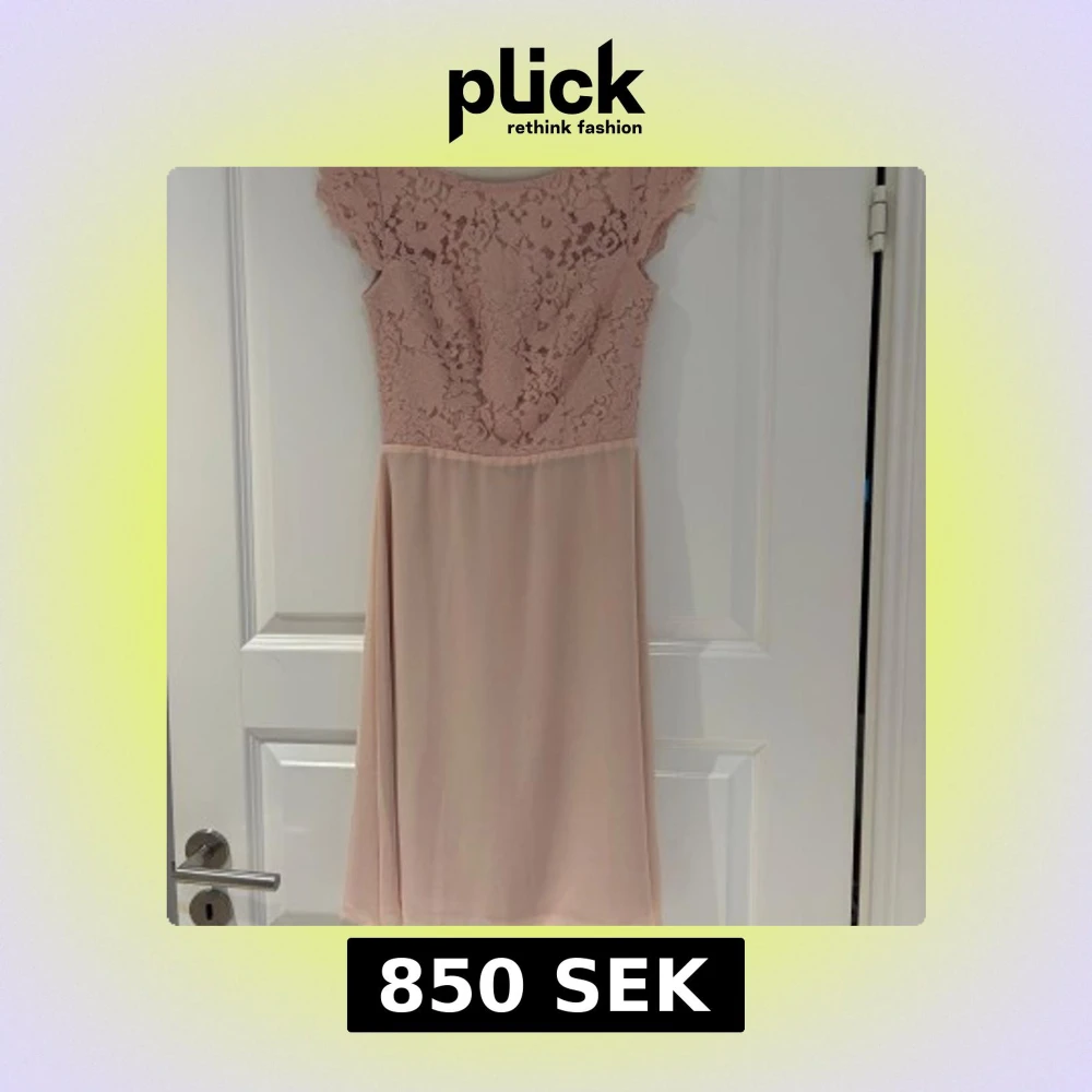 Elegant rosa klänning från Zetterberg couture med vacker spetsdetaljering och korta ärmar. Klänningen har en öppen rygg och en mjuk, flödande kjol, som går till knäna. Perfekt för speciella tillfällen, som t ex vårbal. Nypris 3590kr. Aldrig använd.