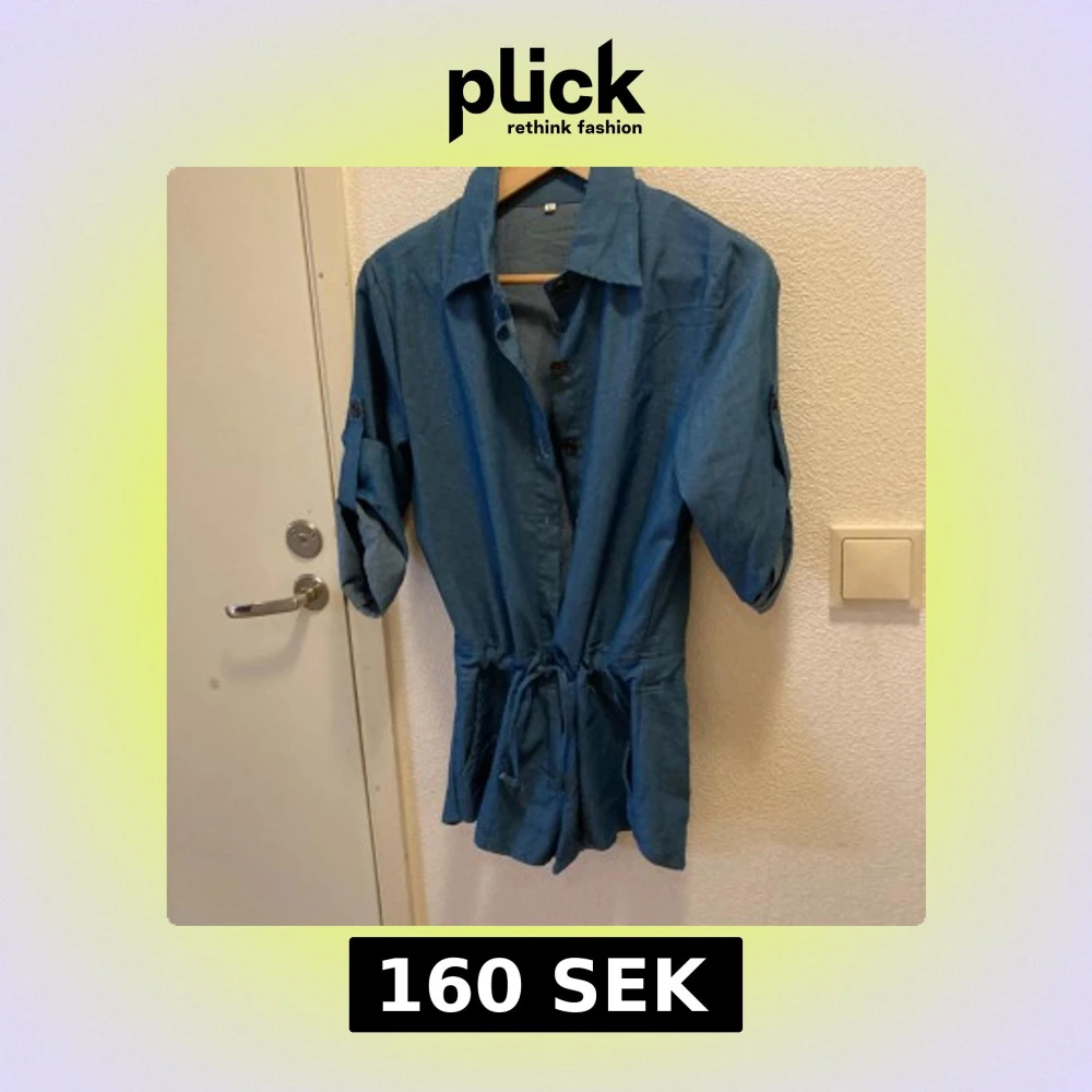Säljer en blå kort byxdress , med krage, knappar framtill och knyt i midjan. Byxdressen har trekvartsärmar som kan vikas upp och fickor på sidorna. Perfekt för en avslappnad och snygg look. Ny!!!