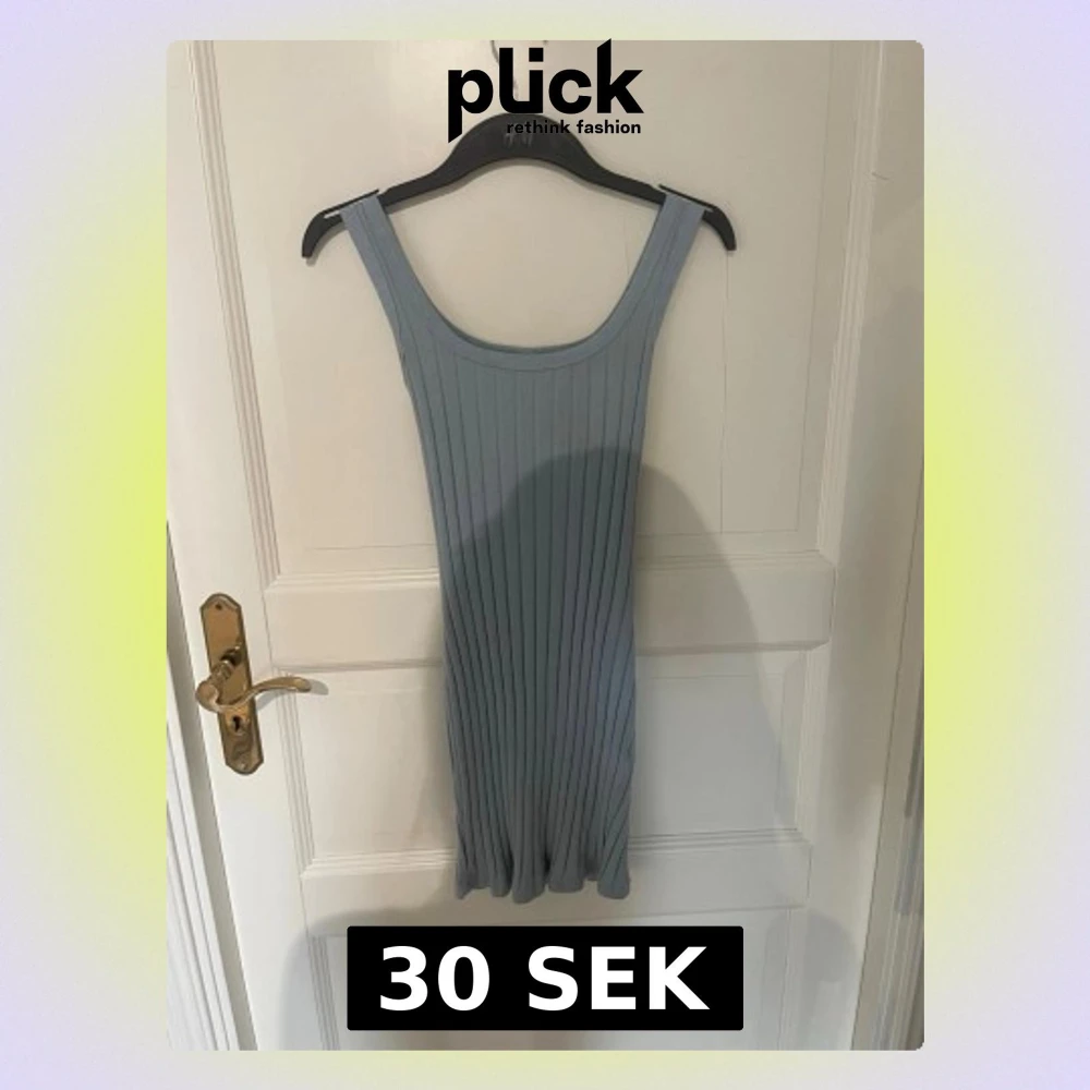 Säljer en ljusblå ribbad kortklänning. Toppen är ärmlös med breda axelband och har en stretchig, figurnära passform.