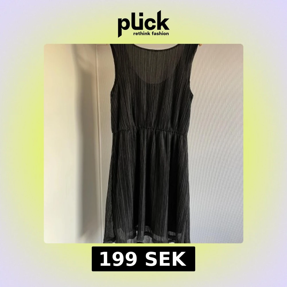 Snygg svart klänning med ett lätt transparent tyg och subtila ränder. Perfekt för en stilren look.