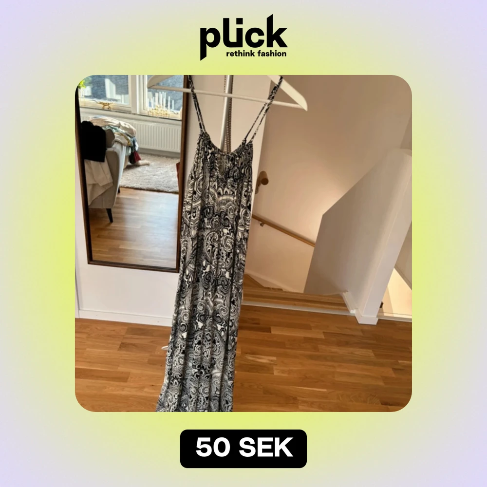 Säljer en superfin svartvit långklänning med ett detaljerat mönster. Klänningen har smala axelband och är perfekt för sommardagar eller en avslappnad fest. Materialet känns lätt och luftigt, vilket gör den bekväm att bära hela dagen.