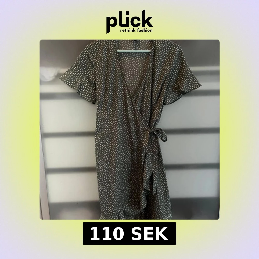 Säljer en grön klänning med vita prickar från Vero Moda. Klänningen har korta ärmar och en omlott-design med knytning runt midjan. Storlek M. Används 2-3 gånger