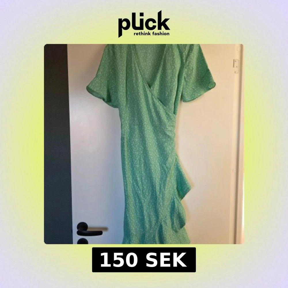Superfin mintgrön omlottklänning från Vero Moda i storlek M. Klänningen har korta ärmar, v-ringning och volangdetalj längs nederkanten. Lätt mönster i vitt och skön passform, perfekt för vår och sommar.