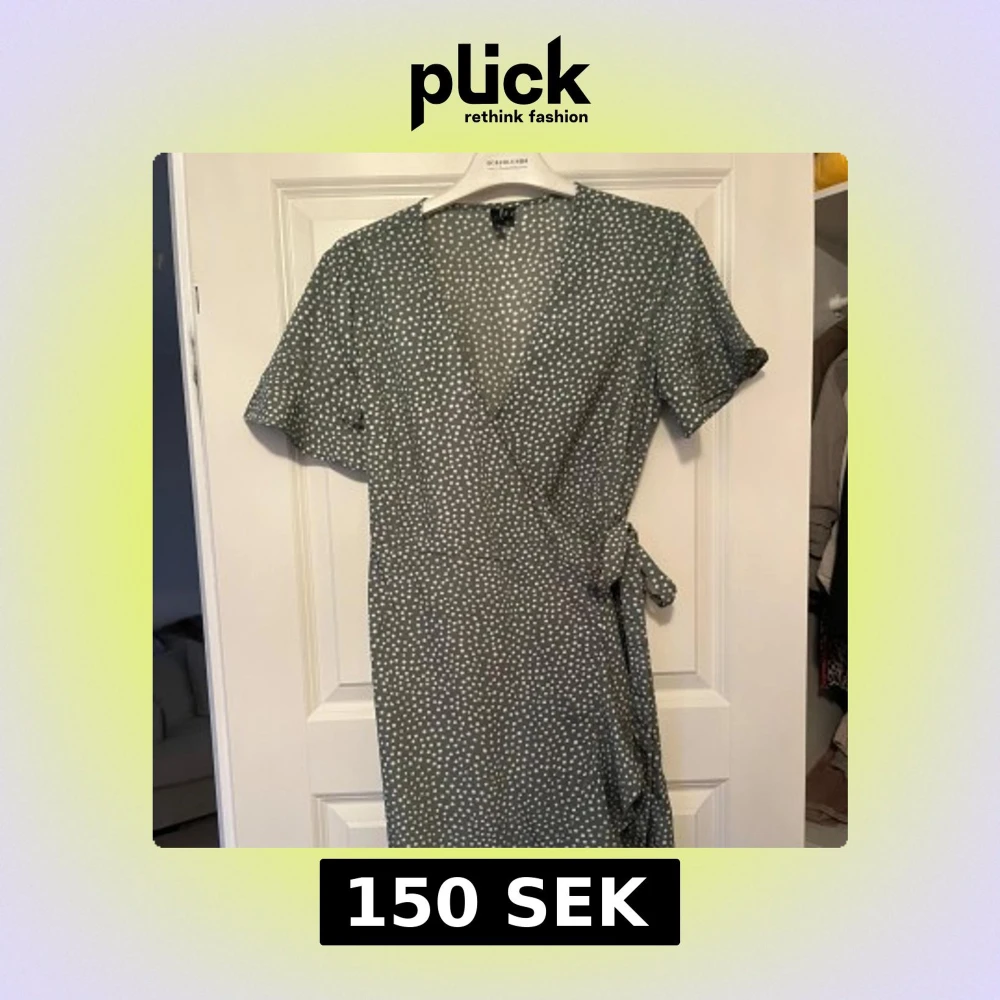 Grön omlottklänning från Vero Moda med vita prickar, kort ärm och knyt i midjan. Klänningen har volangdetalj nertill och v-ringad hals. Perfekt för dig som gillar en feminin och trendig look.