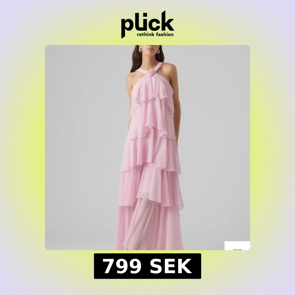 Ljusrosa volangklänning med halterneck
