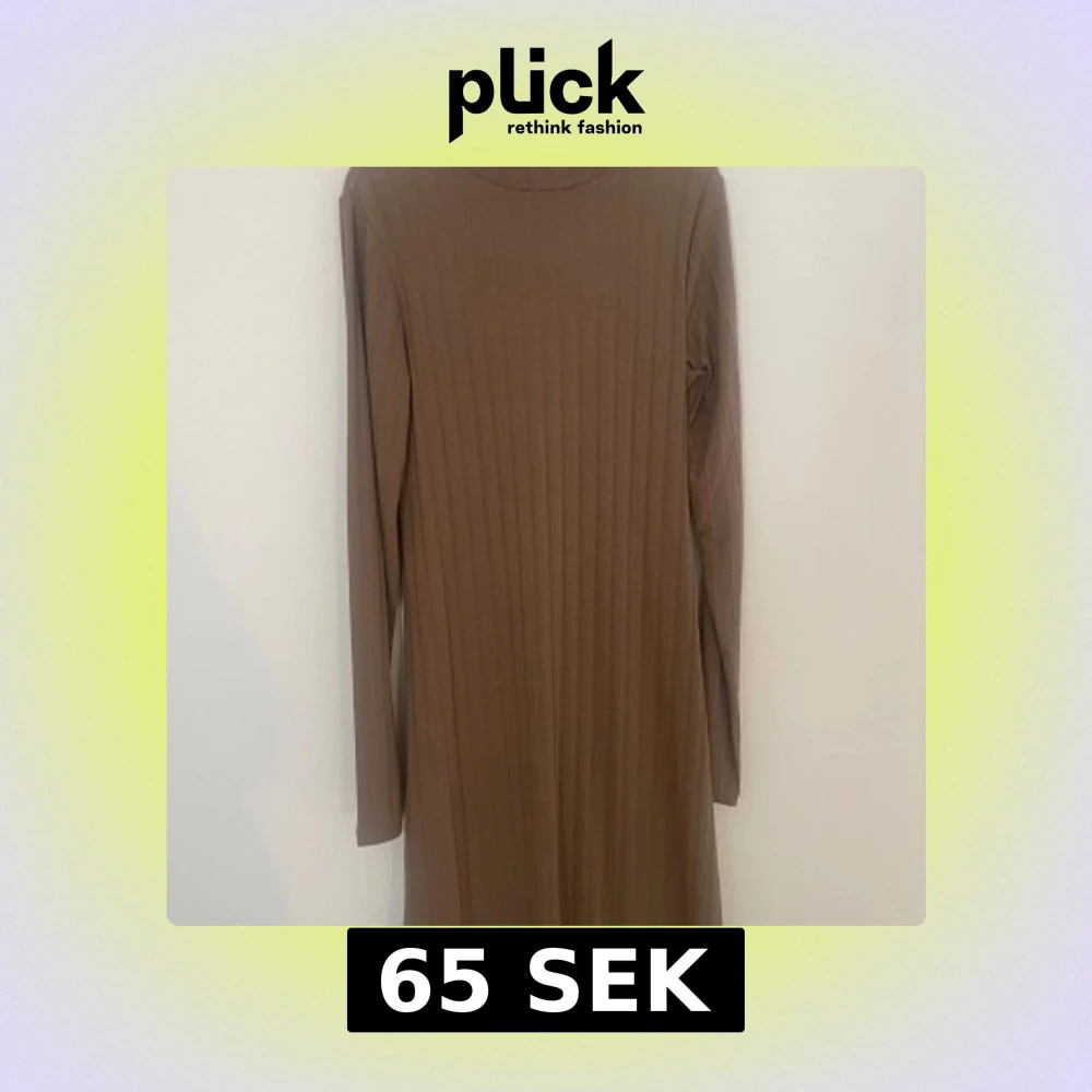 Säljer en ljusbrun ribbad långärmad klänning från Vero Moda. Klänningen har en enkel och stilren design med rund hals och raka linjer. Perfekt för dig som gillar en clean och avslappnad look.