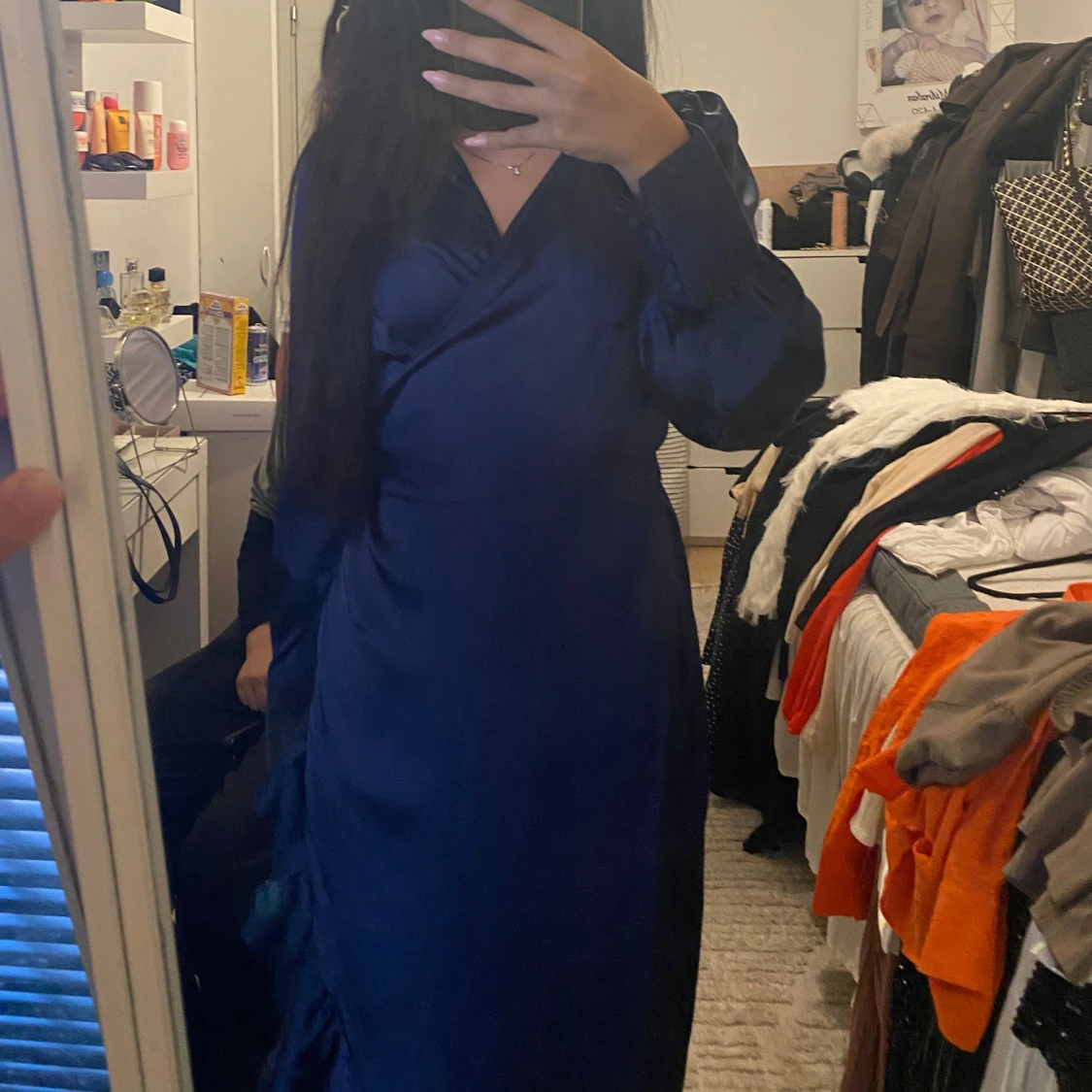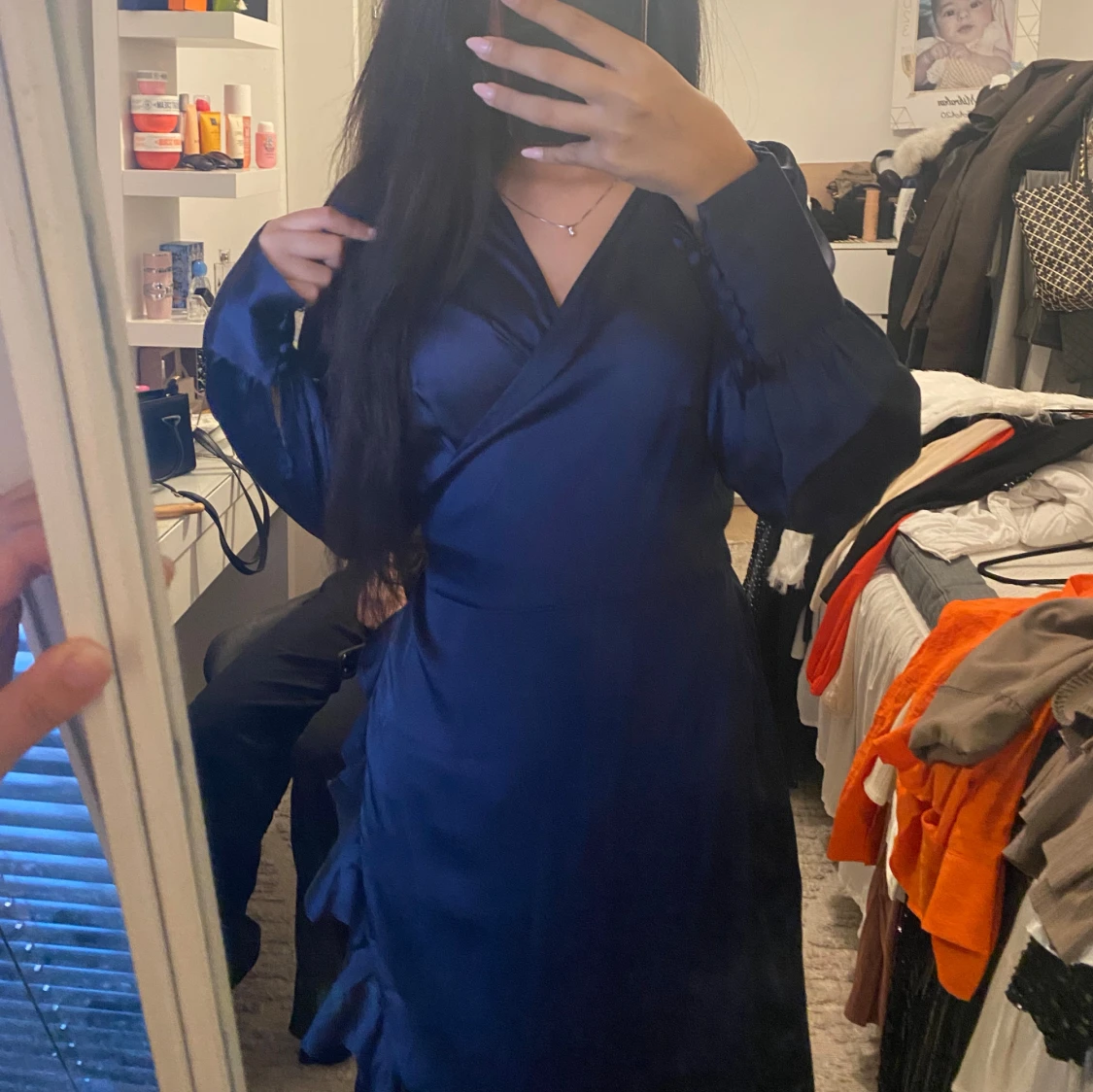 Säljer denna fina klänning i marinblå färg. Aldrig använd. Prislapp på. Superfin till någon fest eller en sommarkväll
