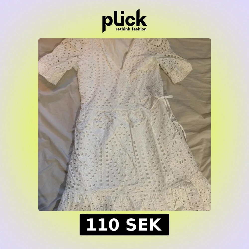 Superfin vit kortklänning från Vero Moda med broderade spetsdetaljer och v-ringning. Klänningen har halvlånga ärmar, omlottknytning i midjan och volang nertill. Perfekt för sommarens alla tillfällen!