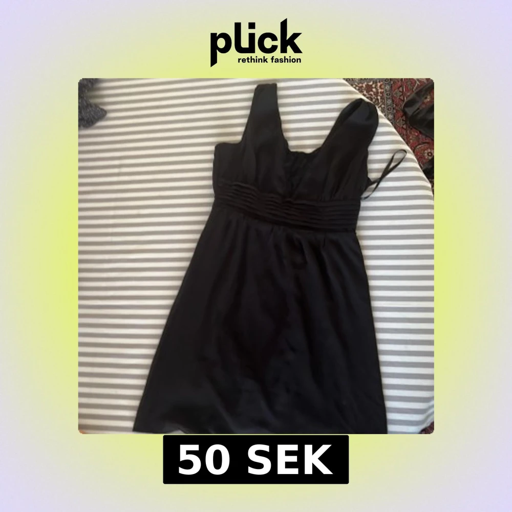 Svart klänning från Vero Moda i storlek S. Modellen är kort med breda axelband och har ett snyggt veckat midjeband. Omlott-detalj med spets vid urringningen ger en extra touch. Materialet känns lätt och har en fin lyster.