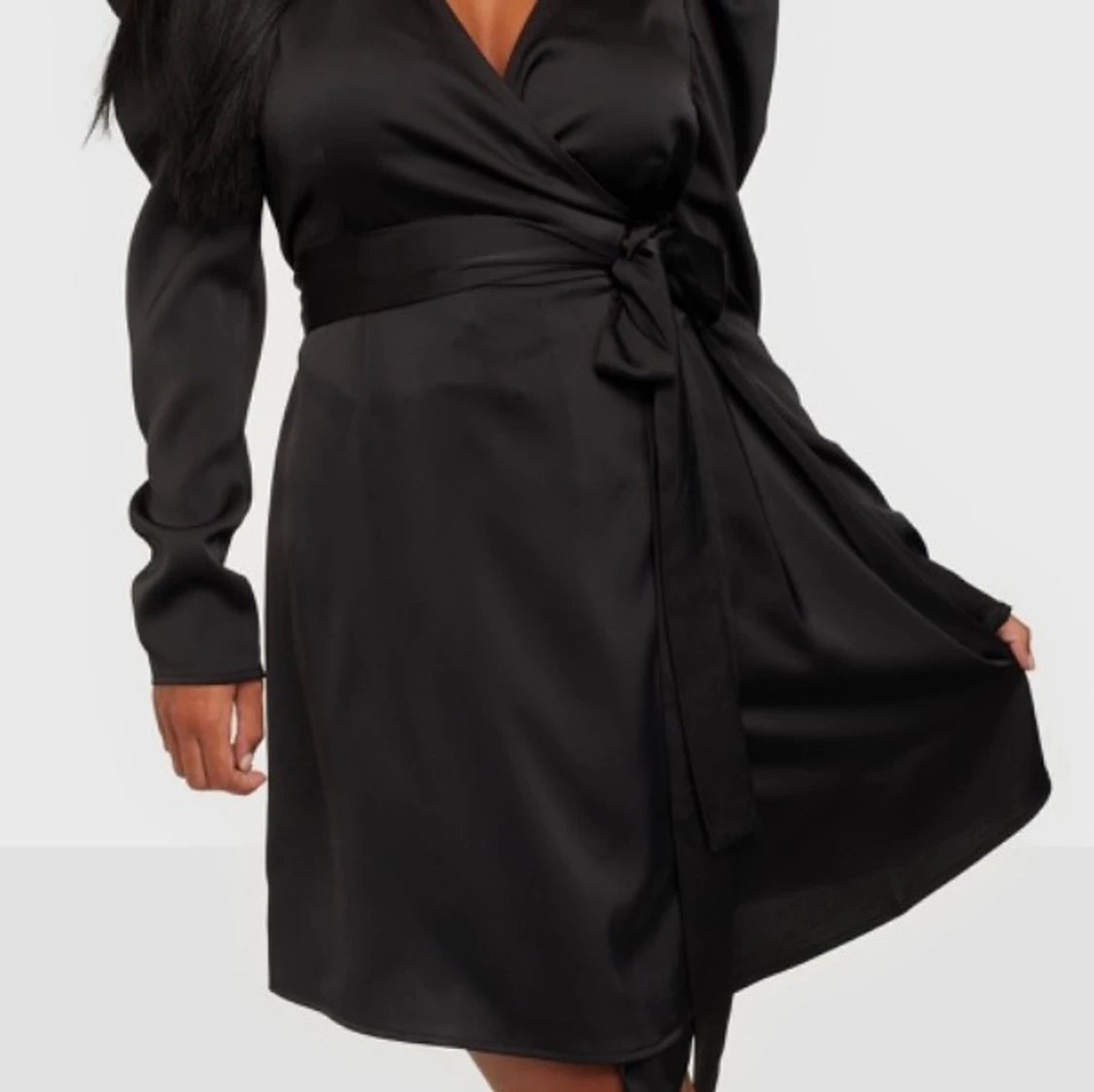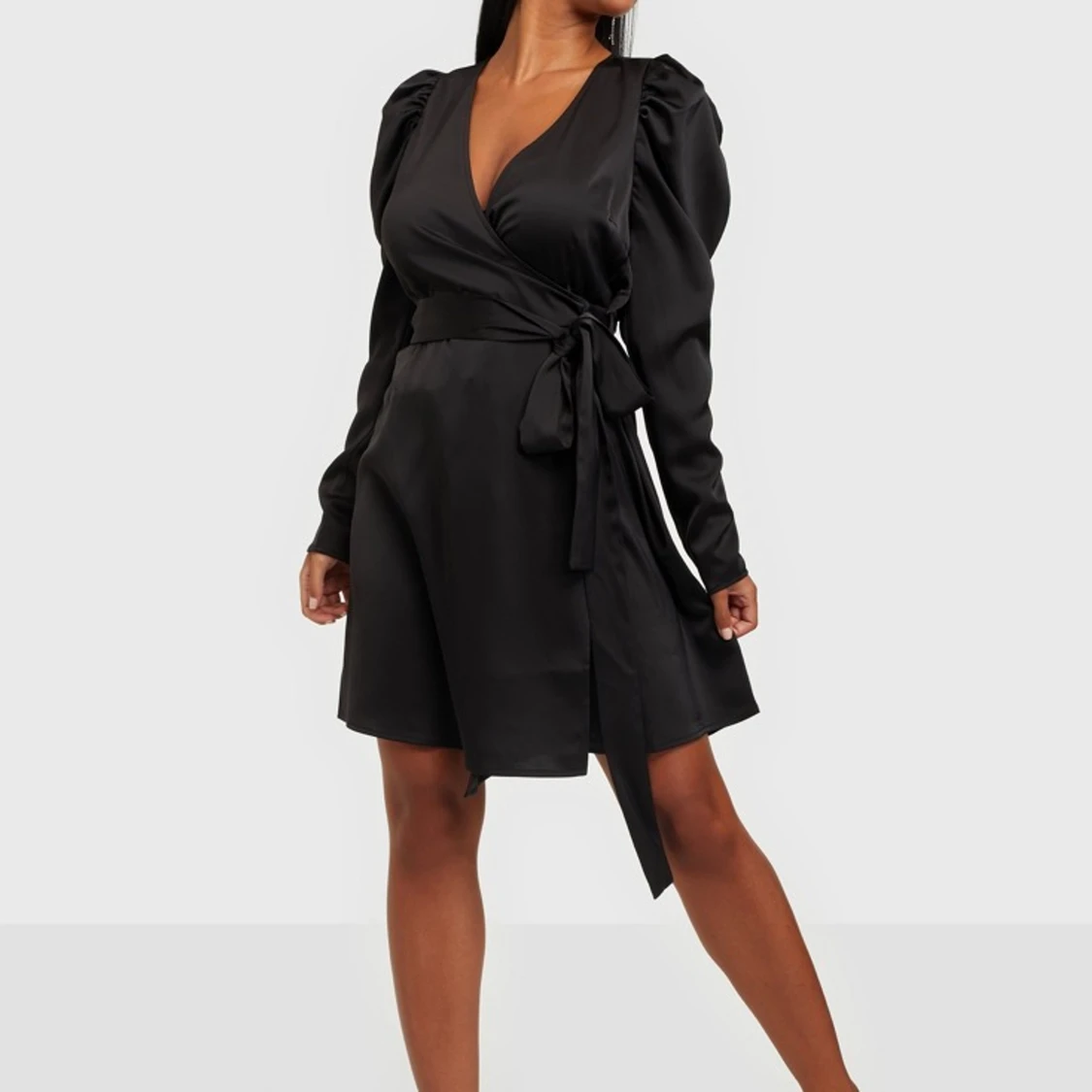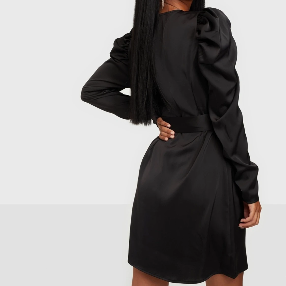 Svart klänning från Vero Moda som har omlott fram, puffaxlar och knytband i sidan vilket gör att du kan justera passformen utifrån hur du vill ha den! Materialet är världens skönaste! Använt den vid två tillfällen🤎 Köpte för 549kr, och den är i samma skick som när jag köpte den🤍 köparen står för frakt!