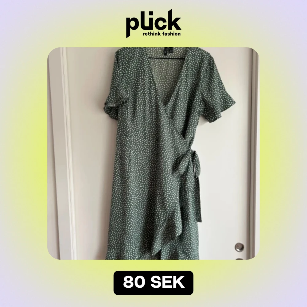Grön wrap klänning med vita prickar. Från Vero Moda storlek L Använd fåtal gånger, som nyskick