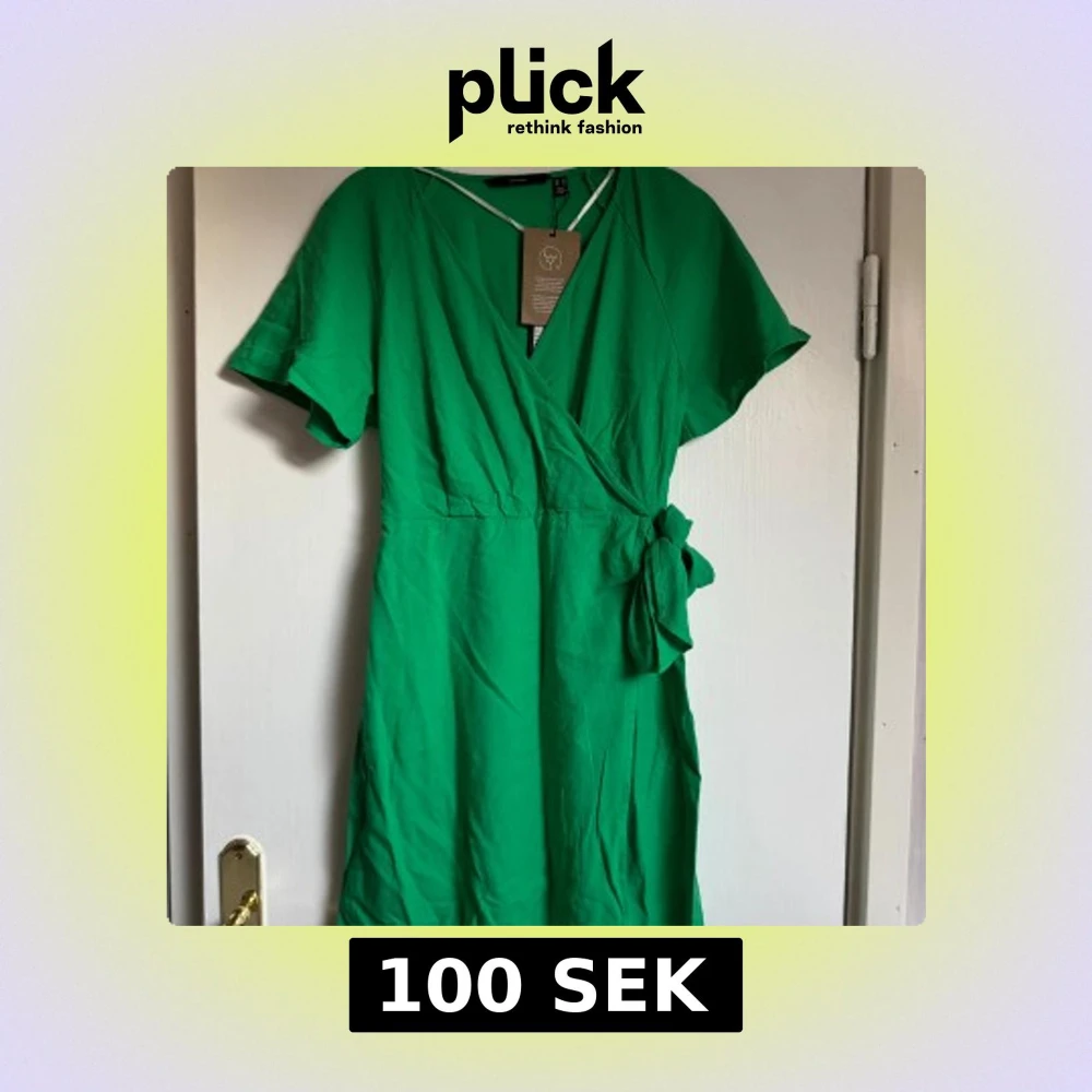 Snygg grön omlottklänning från Veromoda med korta ärmar och knyt i midjan. Klänningen har v-ringning och är tillverkad i ett mjukt tyg. Perfekt för en fräsch och färgstark look under varmare dagar.