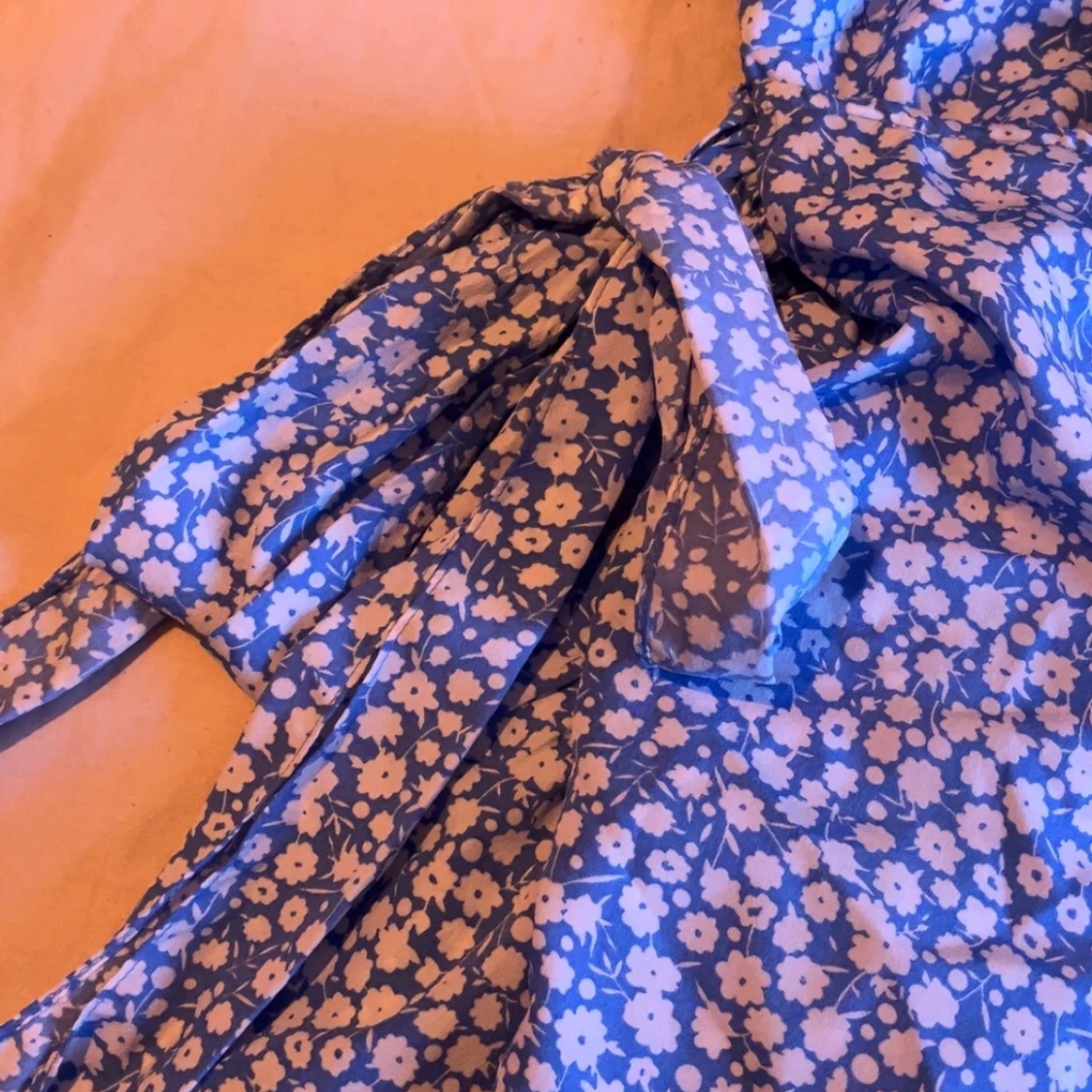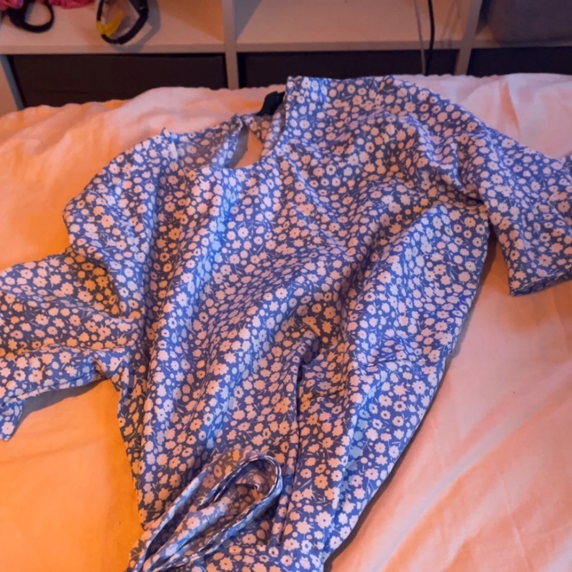 Säljer en ljusblå klänning. Det har ett knyte på sidan av klänningen. Har använts några gånger men inga skador.