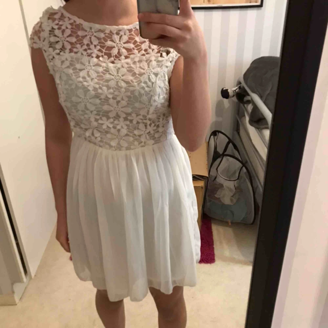 Säljer en Vit klänning. Oanvänd köpt för ca 1 år sedan då jag köpte den begagnad. Aldrig använd bara testad. Vet ej storleken men passar mig som är S. Köparen står för eventuell frakt!