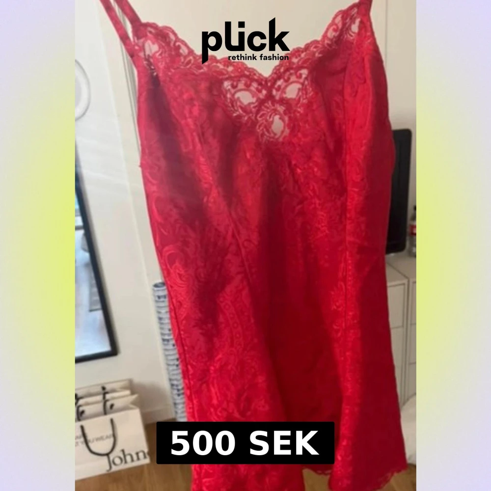 Supersöt röd kortklänning från Victoria's Secret med tunna axelband och vacker spets upptill. Klänningen har ett elegant mönster i tyget och är tillverkad i polyester med spetsdetaljer i nylon. Perfekt för dig som vill sticka ut med en feminin och romantisk look.