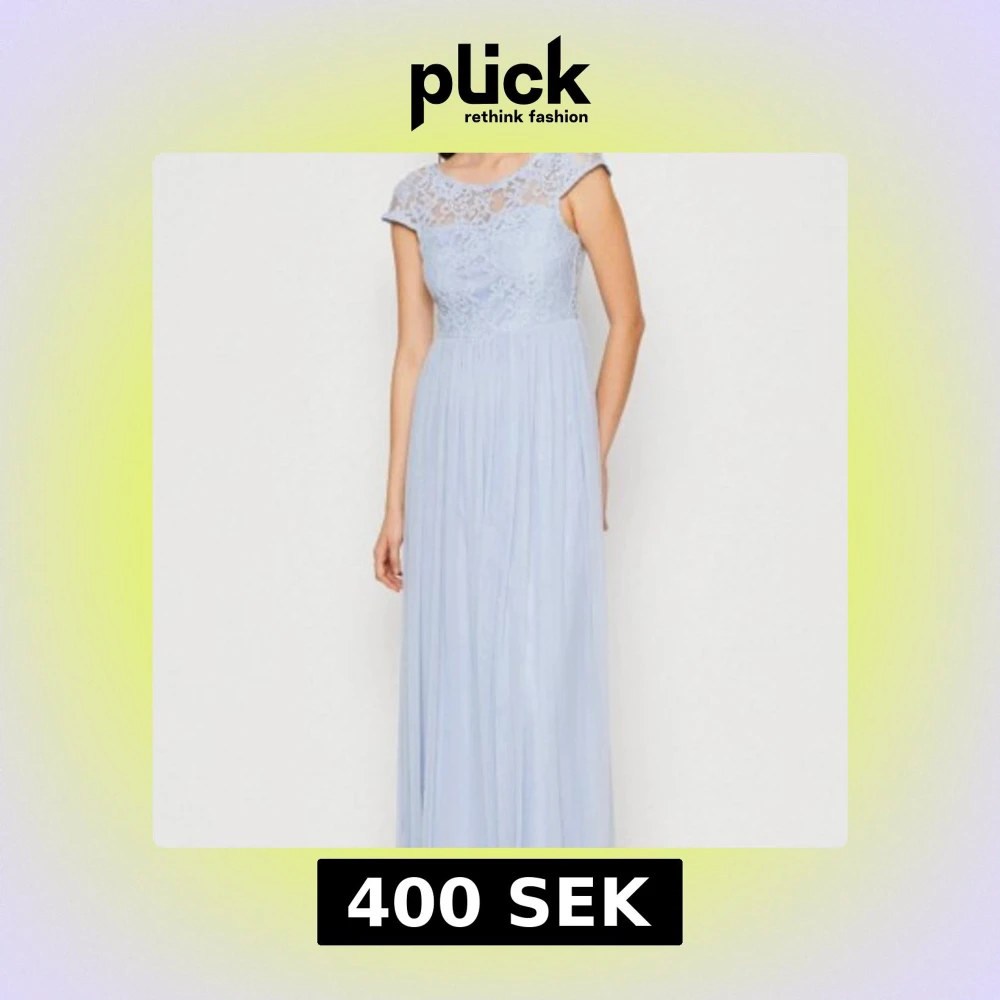 Elegant ljusblå långklänning med vackra spetsdetaljer och knappar i ryggen. Klänningen har en rund hals och är ärmlös, vilket ger en stilren look. Perfekt för speciella tillfällen. Endast använd en gång! Nypris runt 900kr! (färgen är mer lik bild 1 i verkligheten, på bild 2,3,4,5 ser klänningen mörkare ut än vad den är) Pris kan diskuteras! Jag kan skicka fler bilder vid intresse!