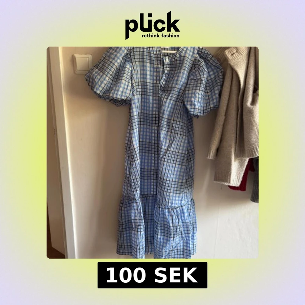 Blårutig klänning med puffärm från Vila