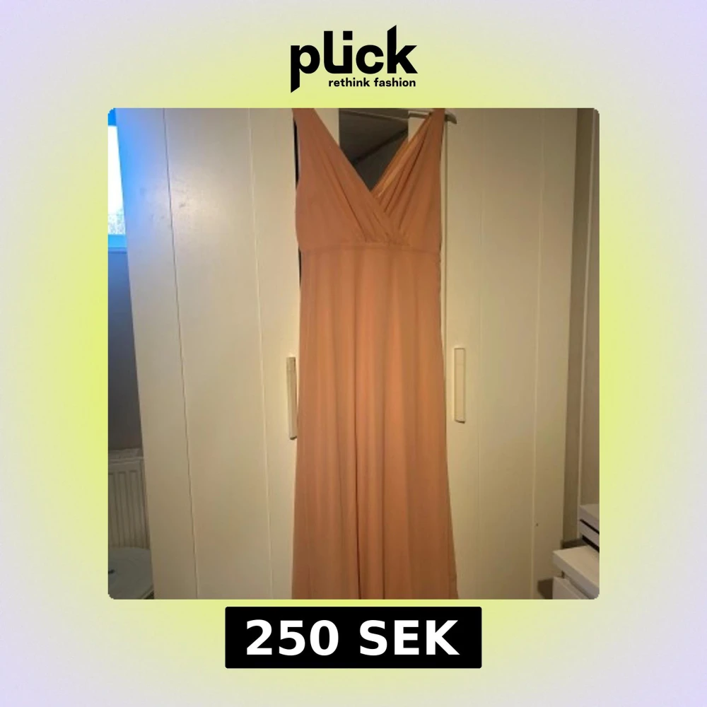 Elegant rosa långklänning med v-ringad fram och knyt i ryggen. Perfekt för speciella tillfällen med sin stilrena design. Använd 1 gång