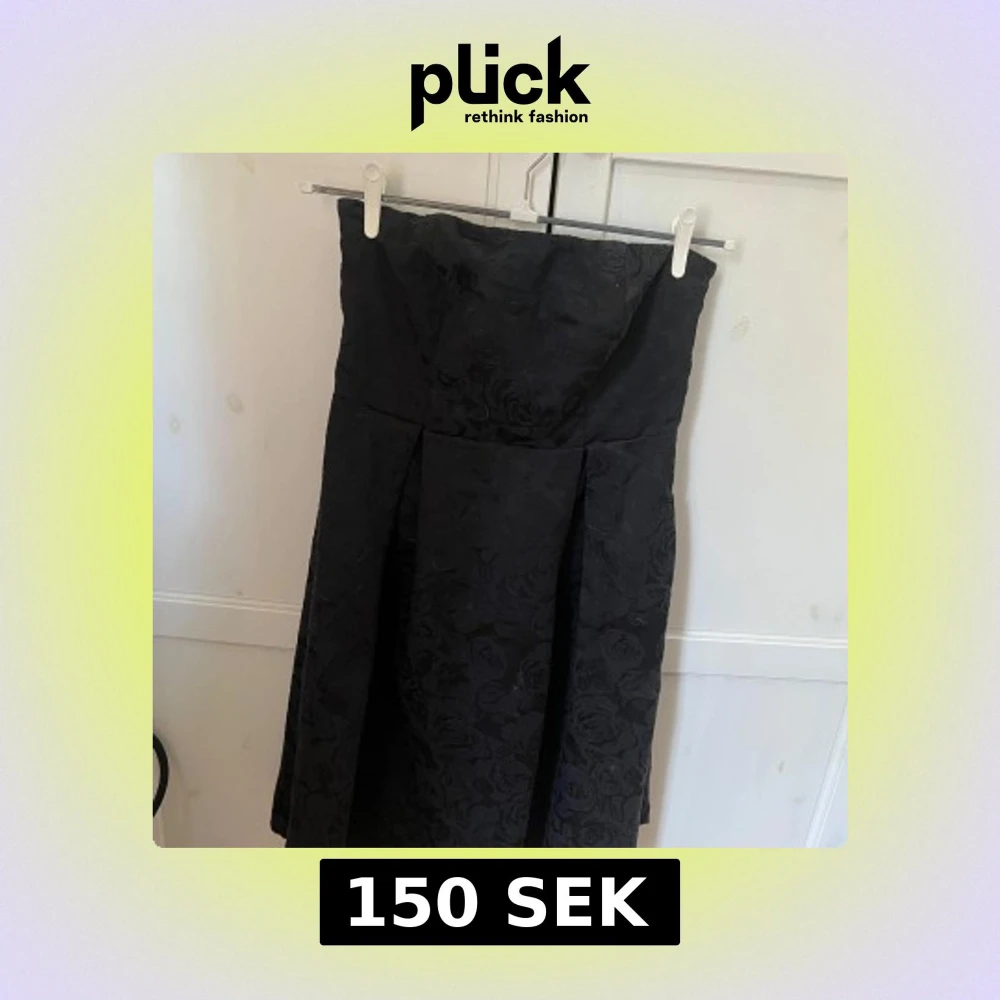 Svart tubklänning med blommor. Från vila storlek M. Finns tre små fläckar som förmodligen går bort i tvätten. Säljer då den är för stor för mig💓