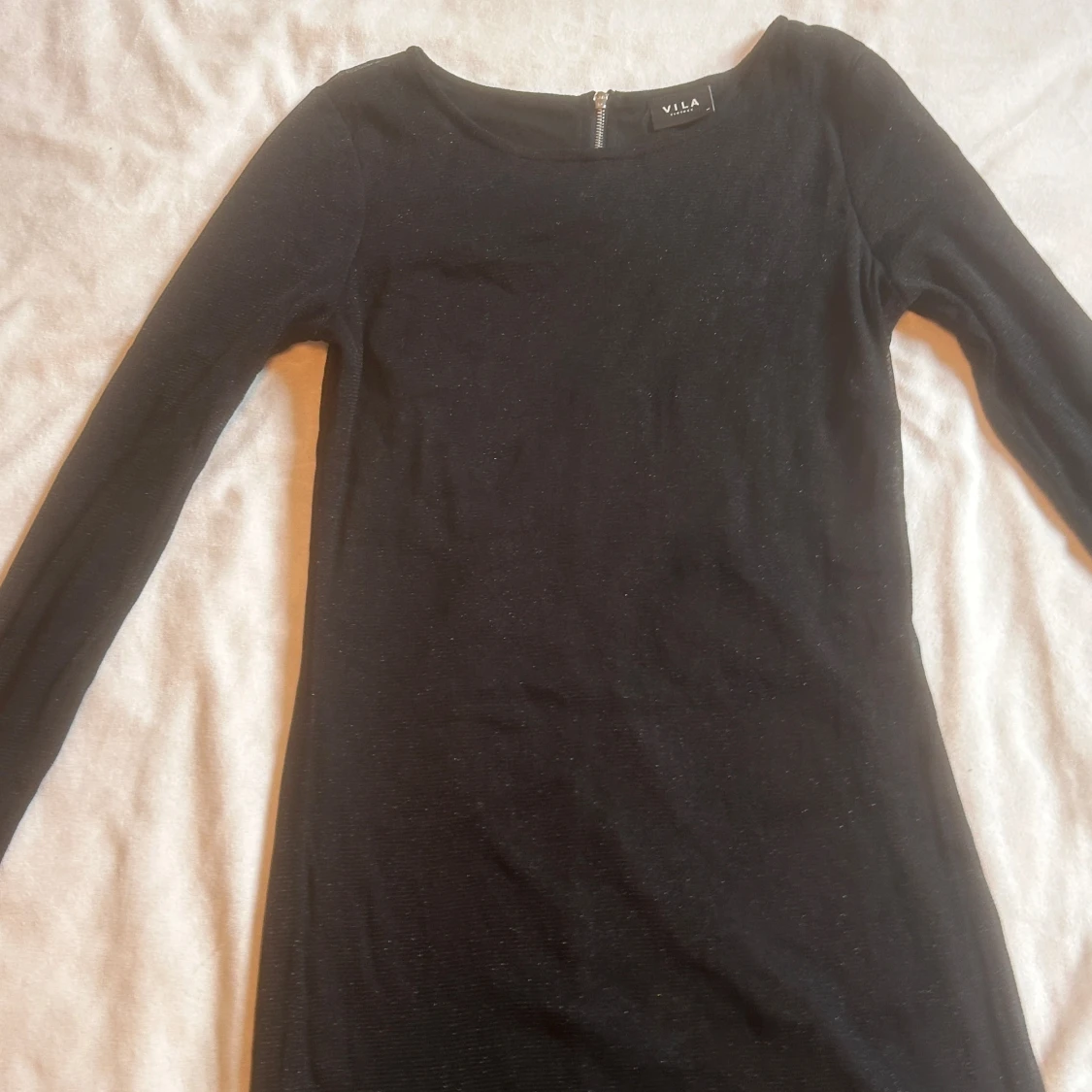 En stilren svart klänning med glitter från Vila med lång ärm och rund halsringning. Klänningen har en smickrande, figurnära passform och är tillverkad i ett mjukt material som sitter bekvämt. Perfekt till nyår.
