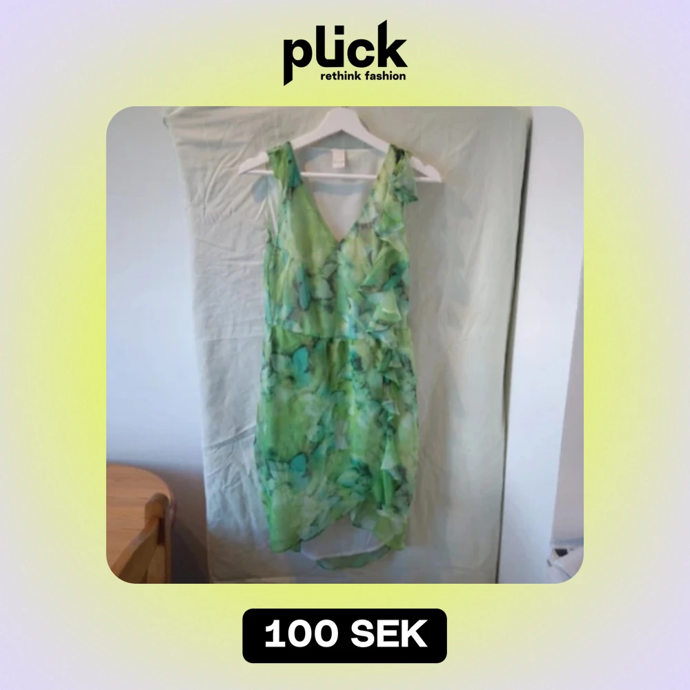 Säljer en superfin grön klänning från Vila med ett härligt blommigt mönster. Klänningen är ärmlös och har en v-ringad design som ger en somrig känsla. Perfekt för en fest eller en dag ute i solen!
