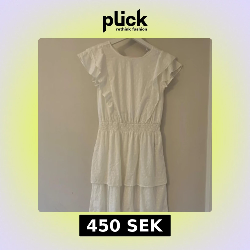 Superfin vit klänning från VILA med volanger. Parefect för misssomar och skolavslutning. Bara använd en gång. Nypris 600kr
