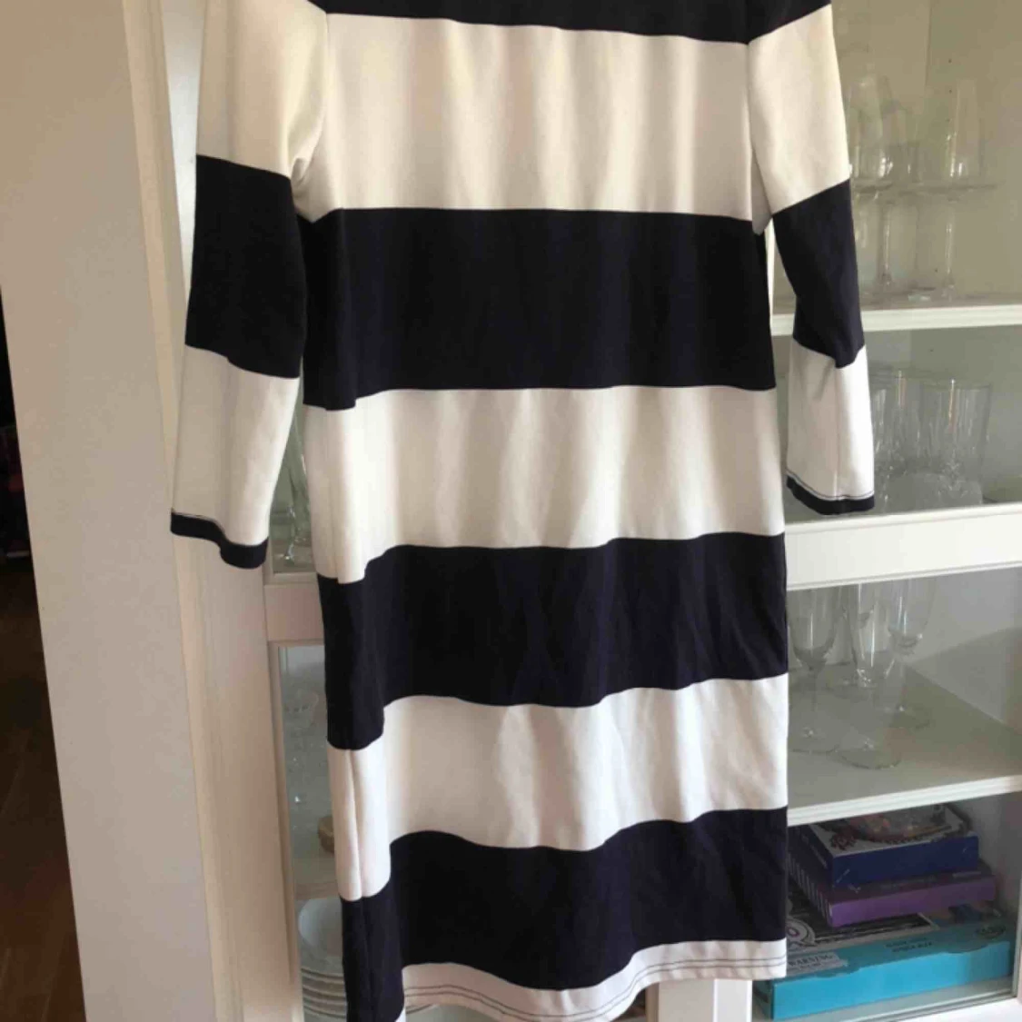 Fin klänning från VILA STL S dragkedja baktill Mjukt stretchig material Fint skick Oanvänd Blå/vit randning