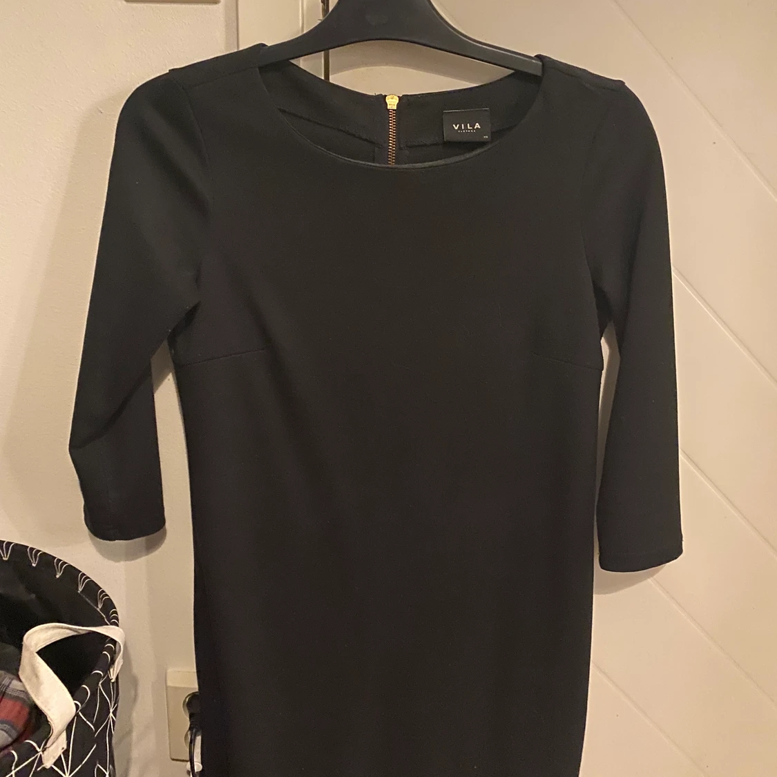 Svart klänning från VILA i storlek xs men passar även s. Går ungefär till knäna och i armarna går den till armbågarna
