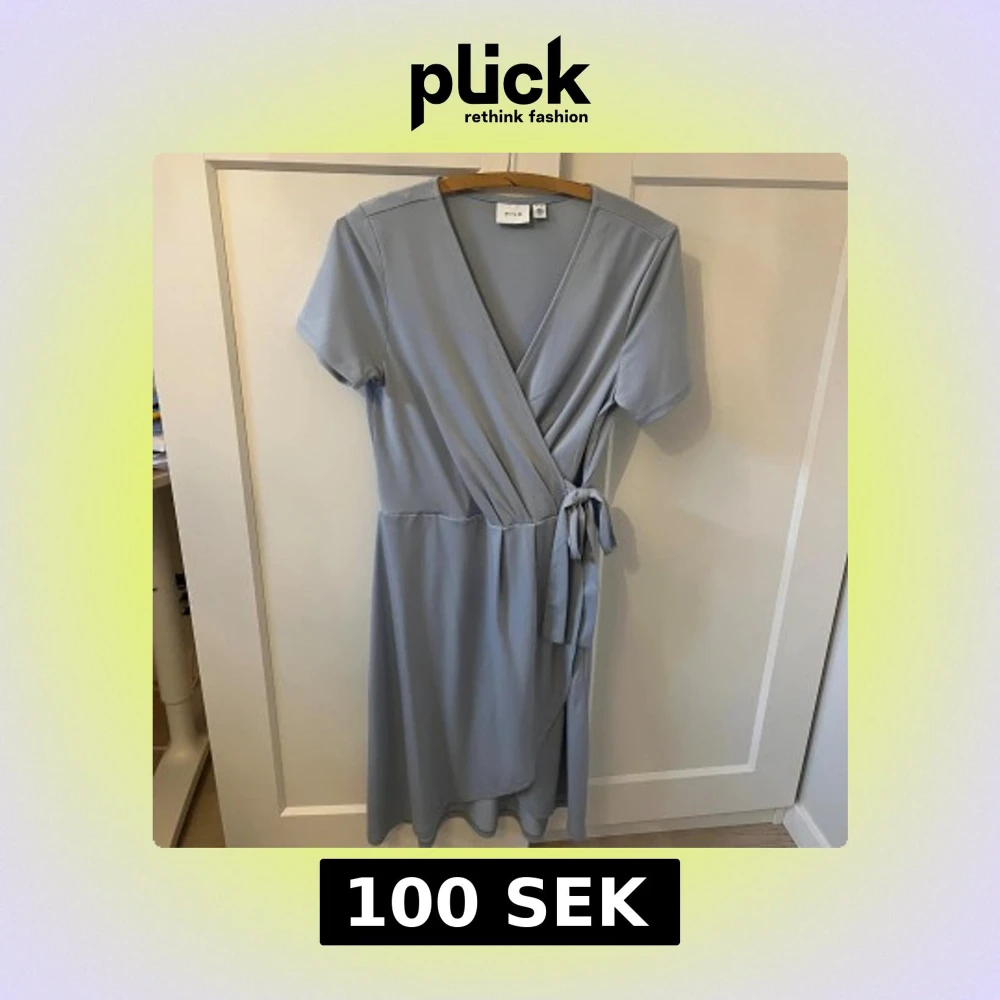 Superfin ljusblå omlottklänning från Vila med korta ärmar och knyt i midjan. Klänningen har v-ringning och en mjuk, flowy passform som ger en avslappnad men ändå stilren look. Använd ett fåtal gånger.
