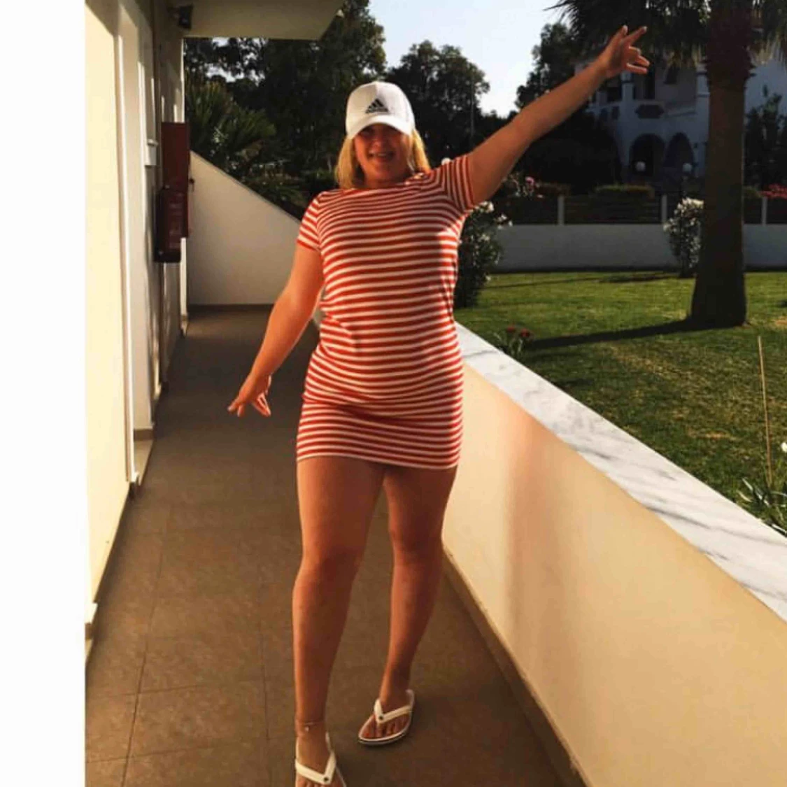 Super fin vit/röd t-shitklänning från vila, knappt använd, bra kvalite’!