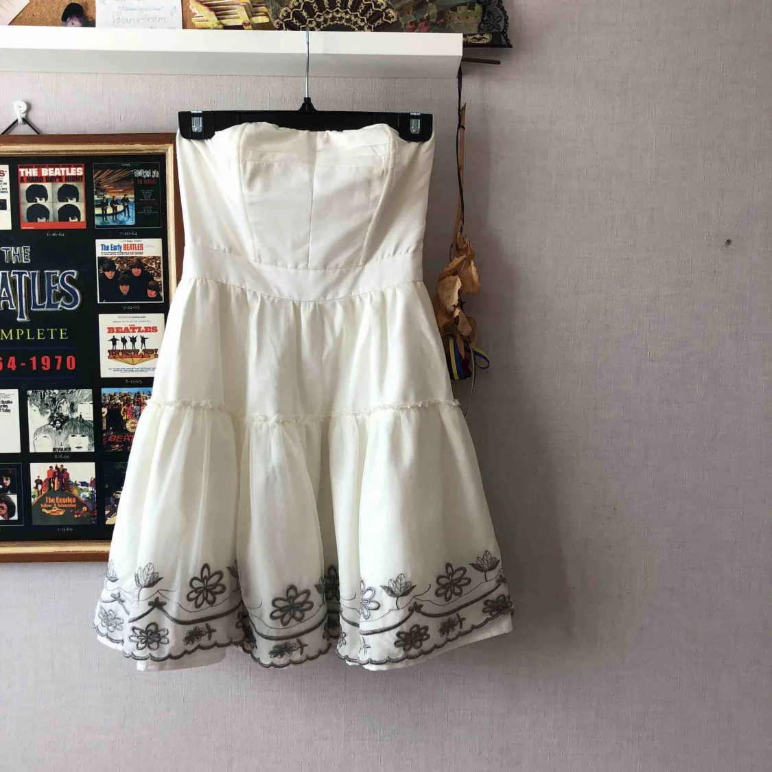 Vit axellös klänning med grå detaljer