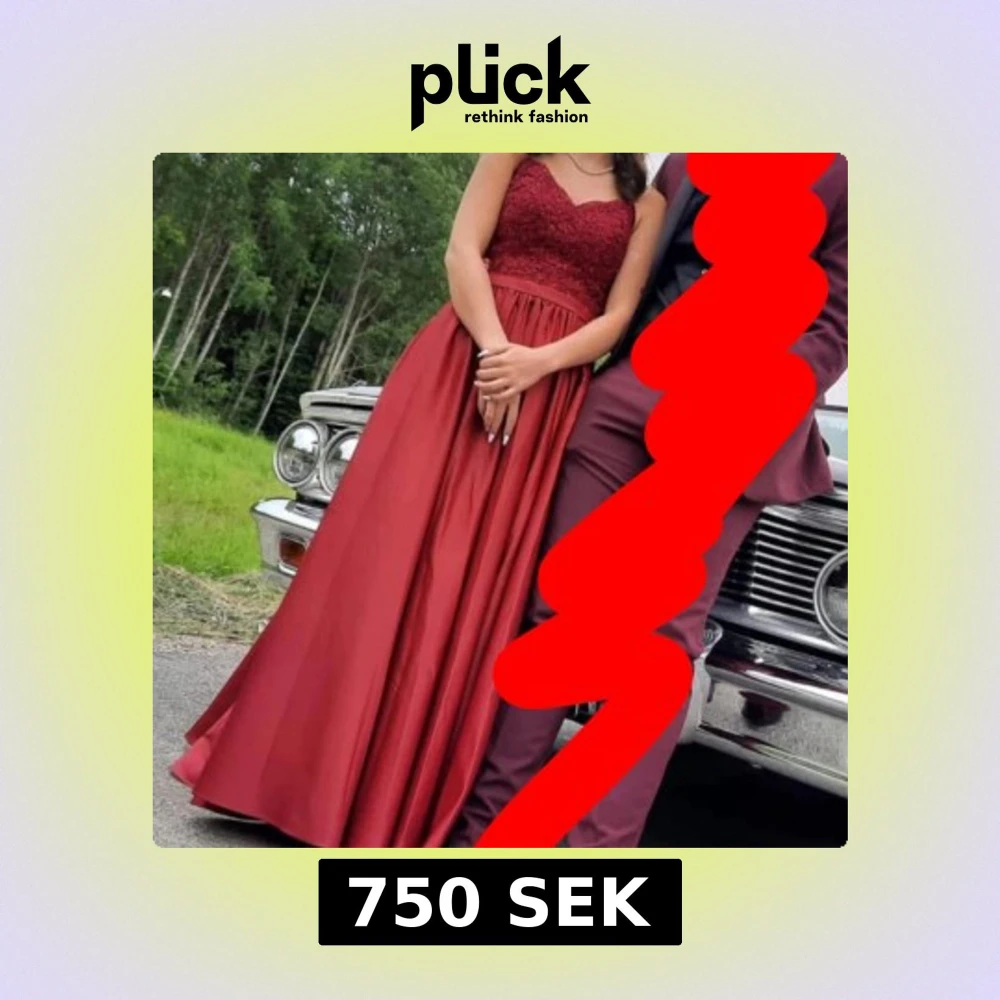 Vinröd balklänning med spetsdetaljer på överdelen. Klänningen har ett litet släp därbak och en slits men inget som direkt märkes. Använd 1 gång. Storlek oklart om de e xxs eller xs köpt för 1600