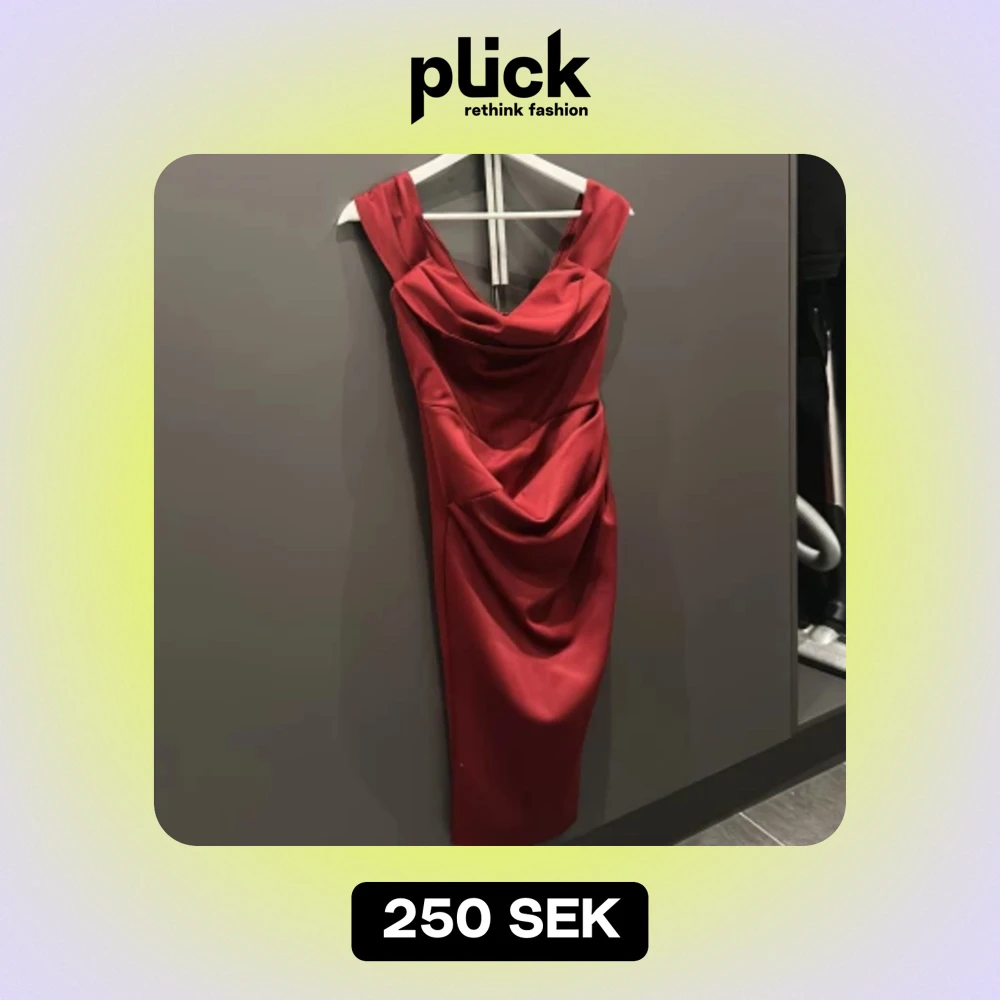 Klänning från ASOS i vinröd, den är lite mörkare i verkligheten. Endast använd 2 gånger🤍🌸 Nypris 500 Sitter jätte fint, man kan ha den off shoulder även✨ Bilderna är svartvita men ni ser hur den sitter på