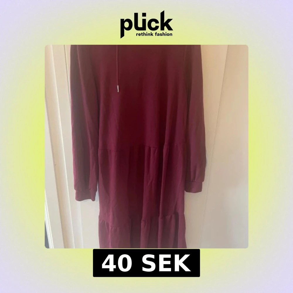 Vinröd långklänning från Jacqueline de Yong med huva och långa ärmar. Klänningen har en avslappnad passform och är tillverkad i mjuk blandning av polyester och viskos. Snygg volangdetalj nedtill och enkel design utan mönster.