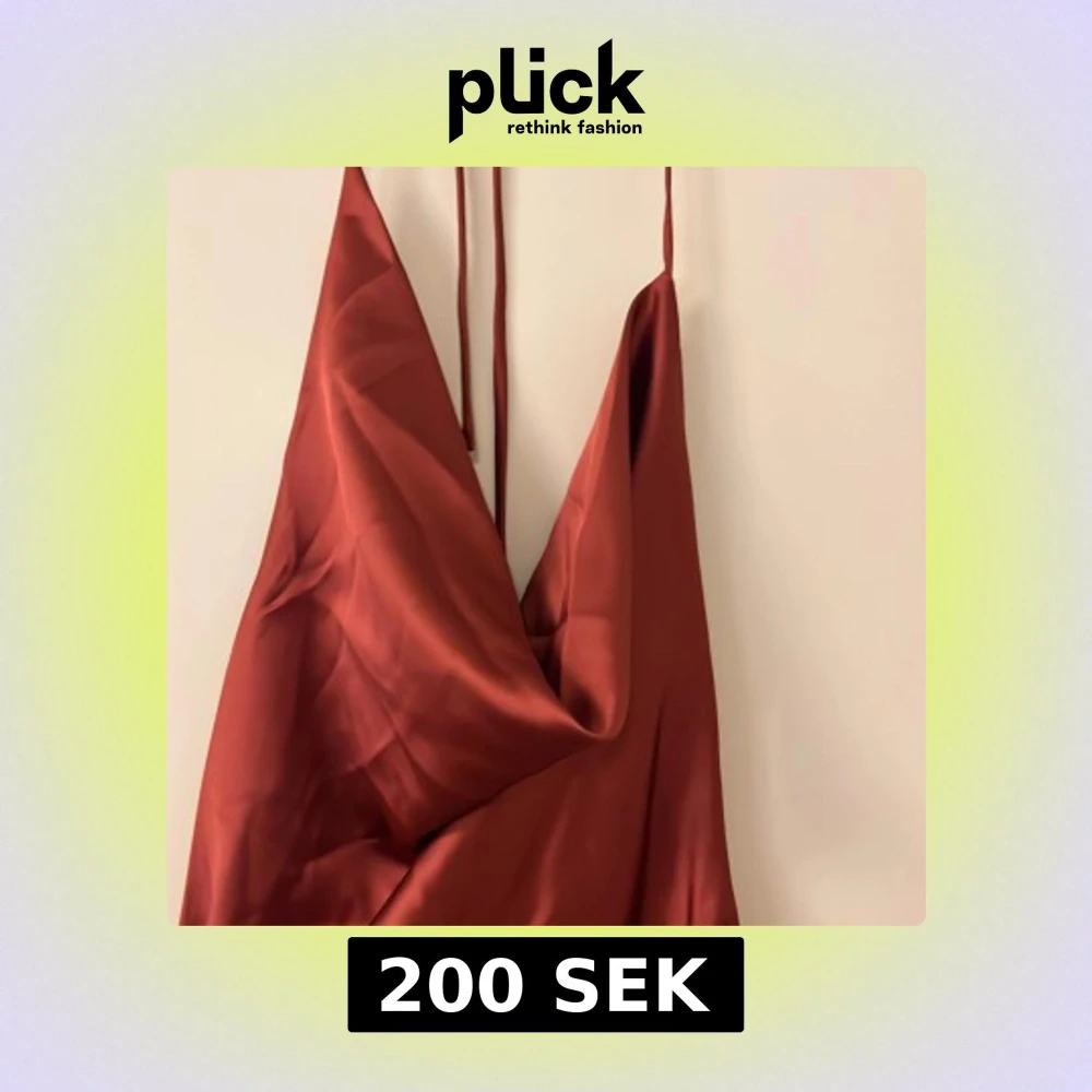 Elegant vinröd långklänning i satin med smala axelband och v-ringad design. Perfekt för en stilfull kväll.