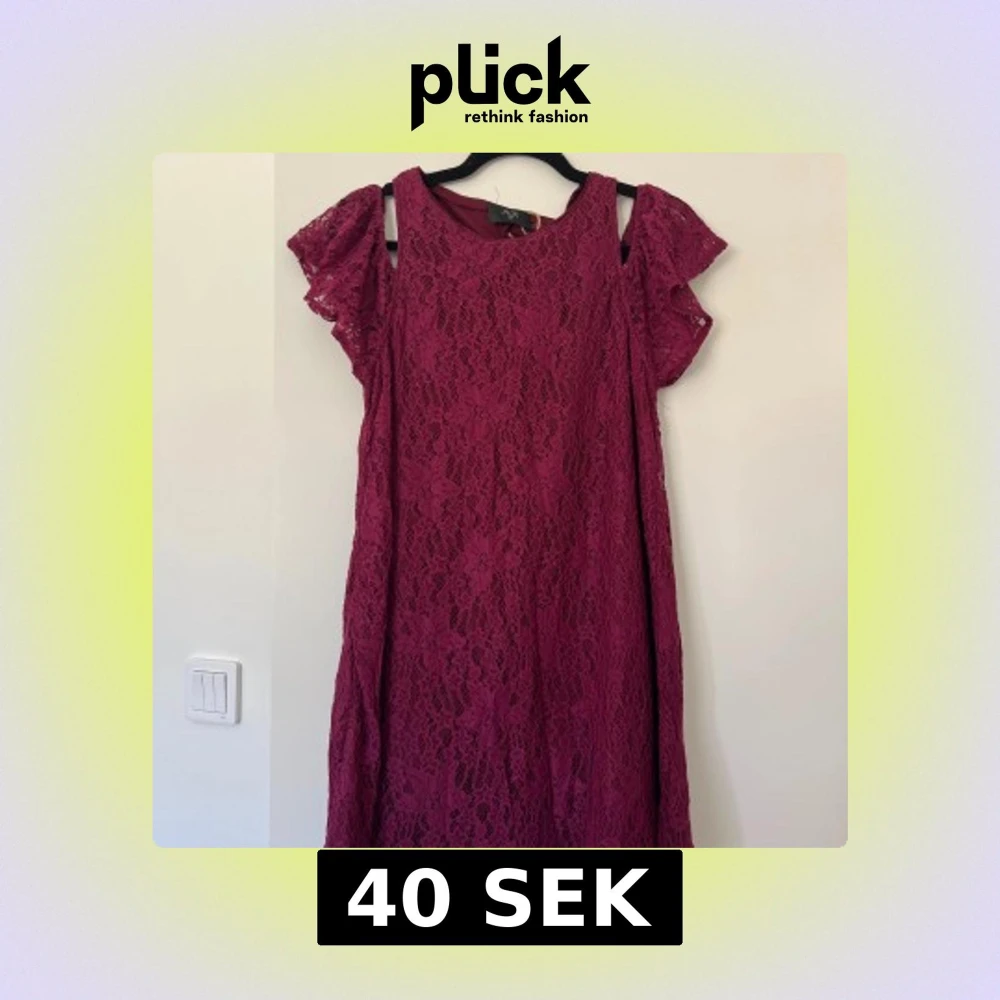 Vinröd kortklänning från AX Paris i vacker spets med blommigt mönster. Klänningen har volangärmar och en luftig passform.