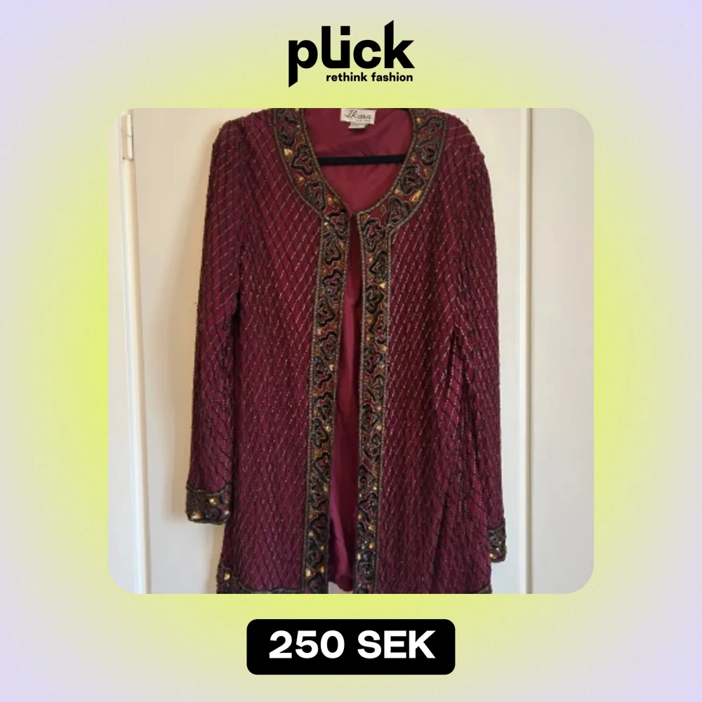 Häftig kavaj/jacka med pärlor. Vintage. Några små trådar vid pärlorna som gått upp lite, men inte trasigt. Från Ikara New York.