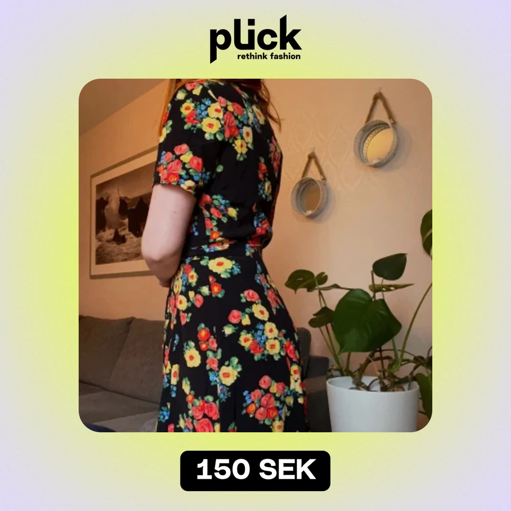 Vintage blommig klänning. Använd fåtal gånger. okänd storlek men passar mig som är ca storlek 36/38 på klänningar. *en knapp saknas men inget som syns eller påverkar stängningen då det är den längst ner*