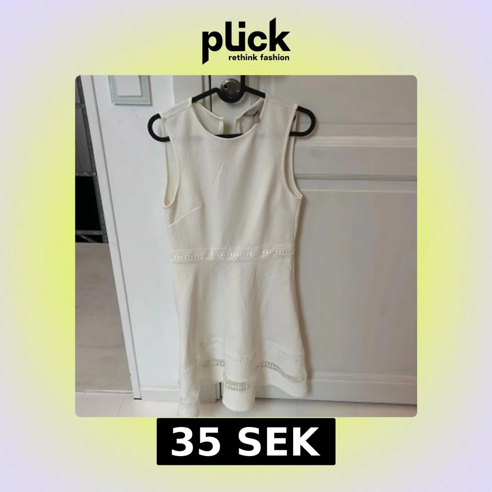 Supersöt vit kortklänning från H&M i storlek XS. Klänningen är ärmlös med rund halsringning och har fina virkade detaljer vid midjan och nederkanten. Materialet är strukturerat och känns mjukt mot huden. Perfekt för sommarens alla tillfällen!