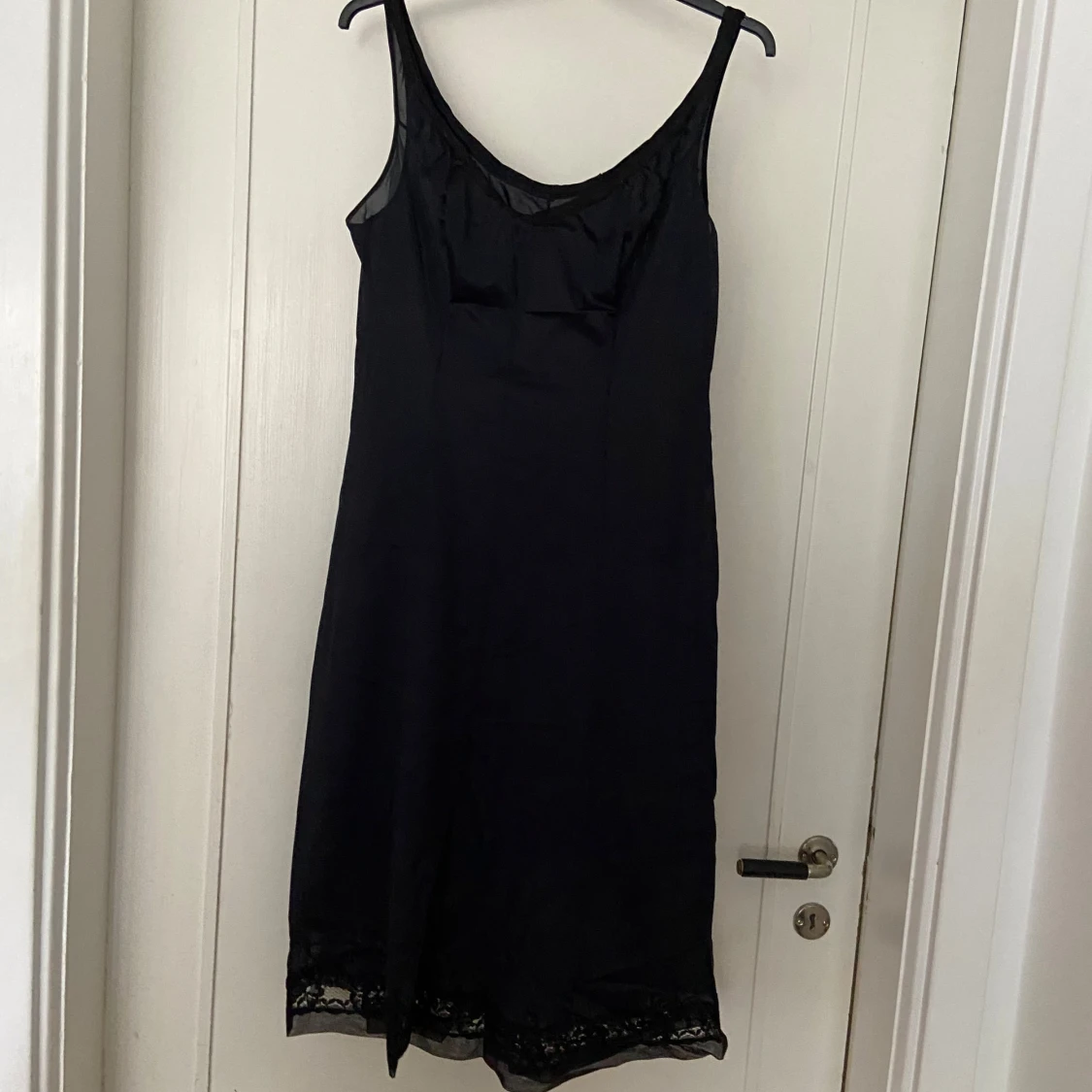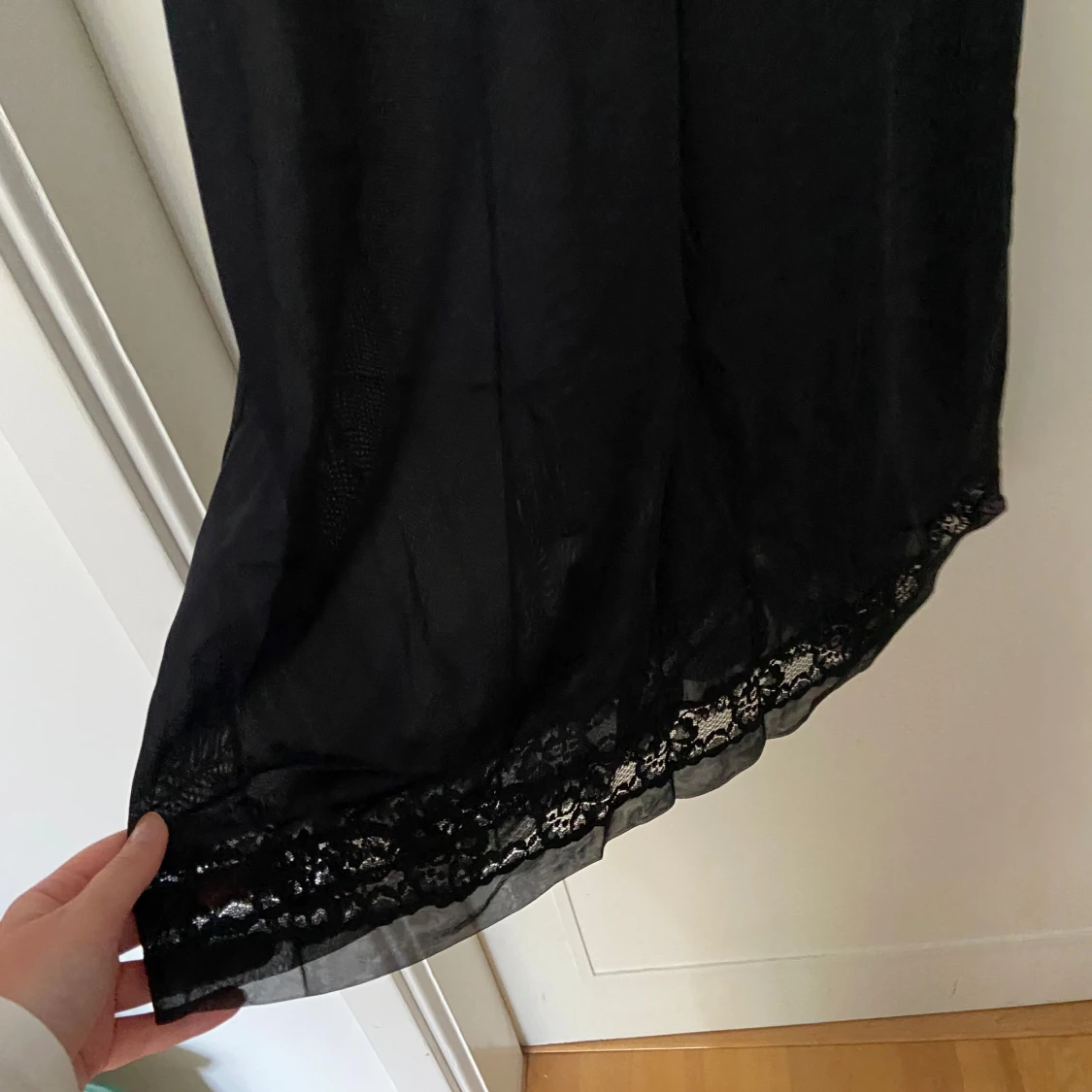 Ett vintage nattlinne i svart đ€Silkigt och skönt, med spets nertill âïžLĂ„ng till knĂ€na ungefĂ€r och inte genomskinligt. Riktig retro, sĂ„ fint att styla pĂ„ olika sĂ€tt!! Storlek uppskattar jag till L eller typ 42-44, kan funka pĂ„ 40 ocksĂ„âšđ€Perfekt skick!