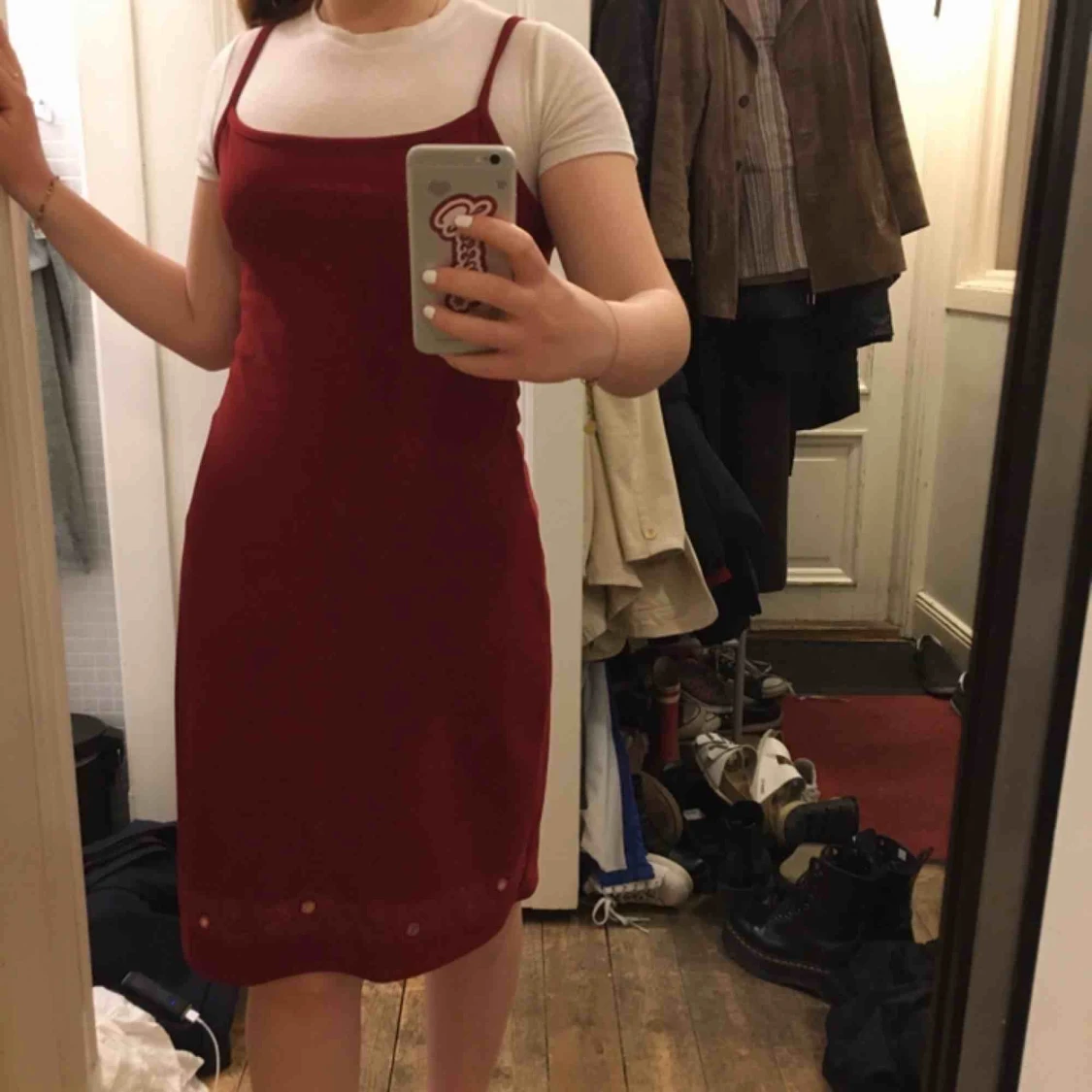 Jättefin röd klänning med spegeldetaljer. Slits i sidan. Står ingen storlek men gissar på S/M. Bra skick. Möts i innerstan/köparen står för frakt. Klänningen är i syntet-aktikt material.