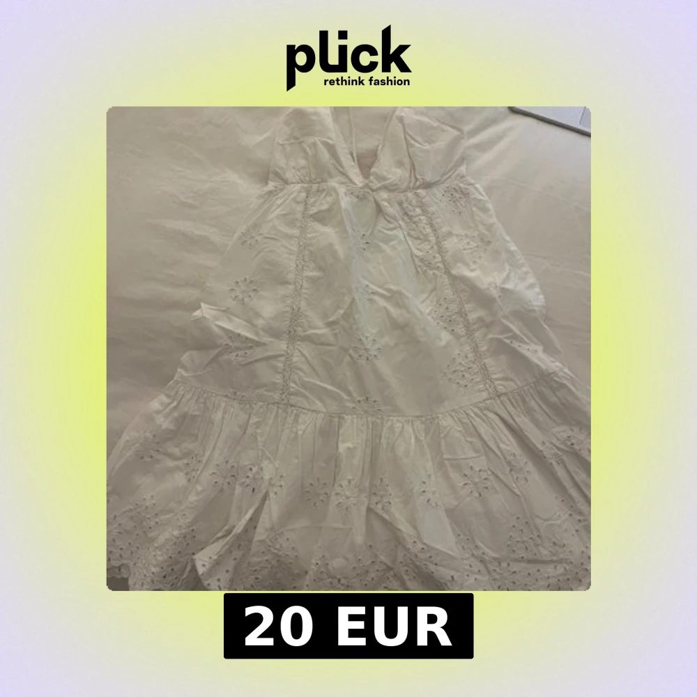 Supersöt vit kortklänning från Zara i storlek XS. Klänningen har broderade blommor, volangkant och v-ringad front. Den är ärmlös med snörning i ryggen och tillverkad i bomull, perfekt för varma dagar. Snygg och fräsch look med romantiska detaljer.