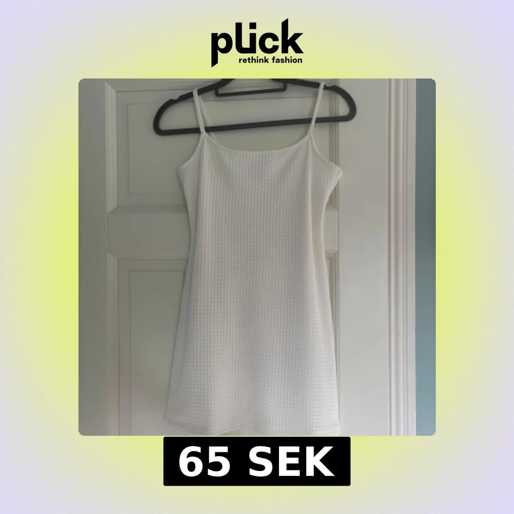 Säljer en vit kortklänning från Divided med smala axelband och diskret strukturmönster i tyget. Klänningen har en figursydd passform och är tillverkad i ett lätt material, perfekt för varma dagar. Använd 1 gång vid skolavslutning.