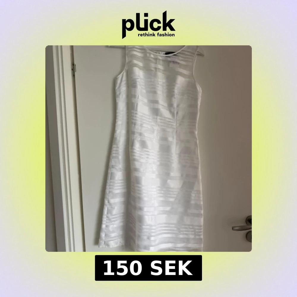 Säljer en elegant vit ärmlös klänning från s.Oliver Black Label. Klänningen har diskreta horisontella ränder i tyget och en klassisk, rak passform. Perfekt för somriga tillfällen eller studentfirande.