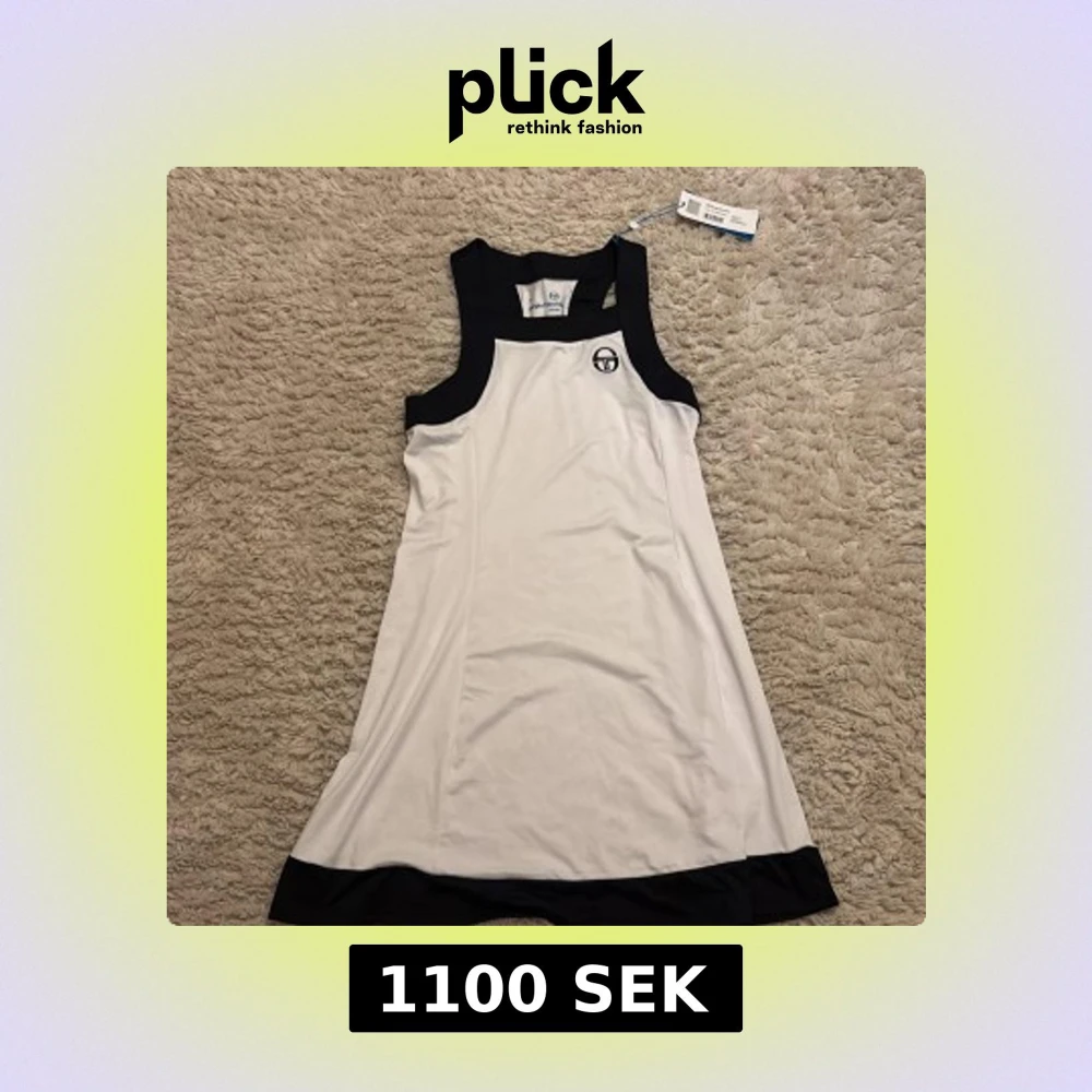 Snygg vit tennis klänning från Sergio Tacchini med svarta detaljer. Perfekt för sportiga tillfällen med sin ärmlösa design och bekväma passform. Märkets logga pryder framsidan för en stilren look.
