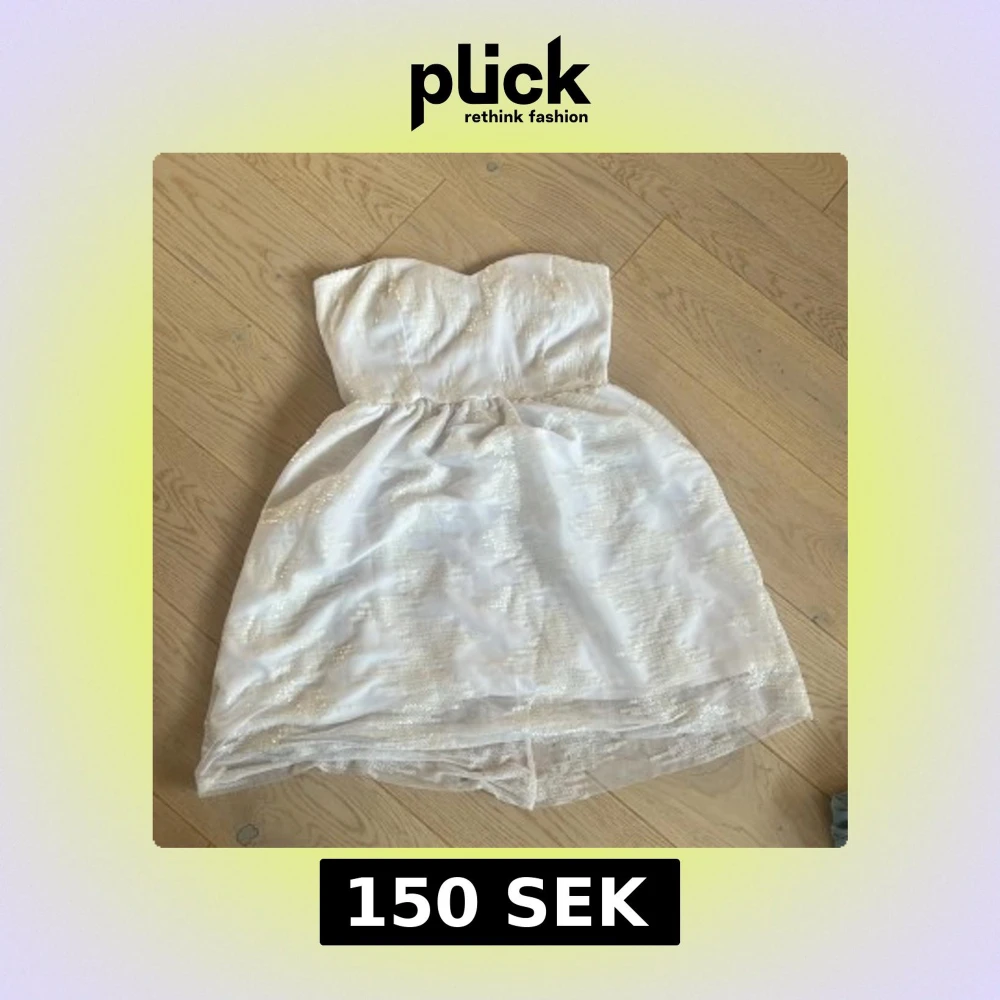 Säljer en vit axelbandslös klänning från Dark Pink som tyvärr är för stor. Klänningen har en glittrig yta och en dragkedja i ryggen. Storlek s. Perfekt till fest eller student ✨✨