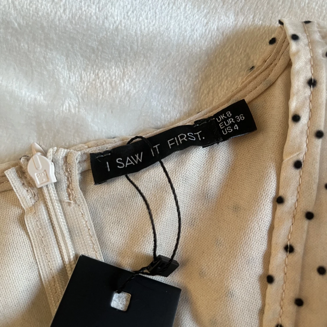 Jätte gullig prickig klänning som är helt ny med taggar. beige/vit med svarta prickar 💕frakt tillkommer