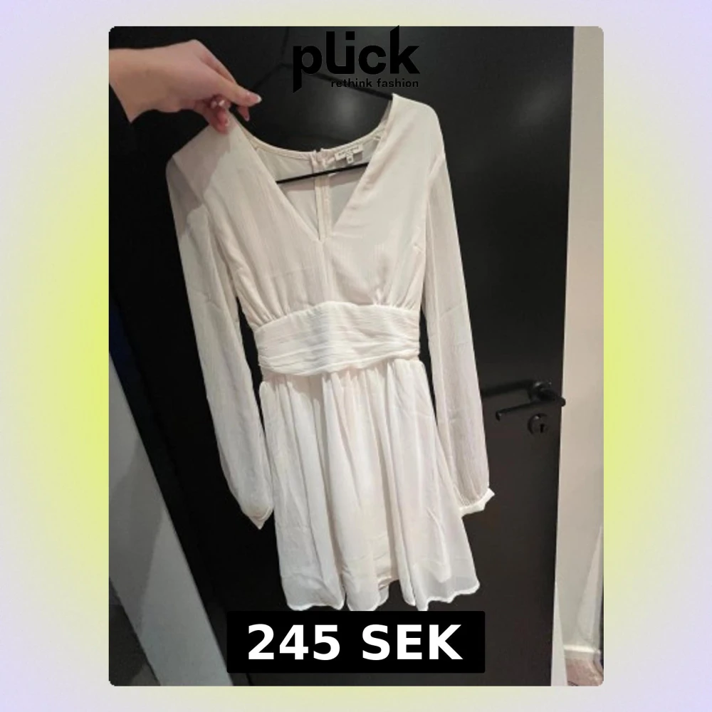 Superfin vit kortklänning från bubbelroom med v-ringning, långa ärmar och knytband i midjan. Klänningen har en lätt, flowy känsla och dragkedja i ryggen. Perfekt för dig som gillar en stilren och fräsch look.