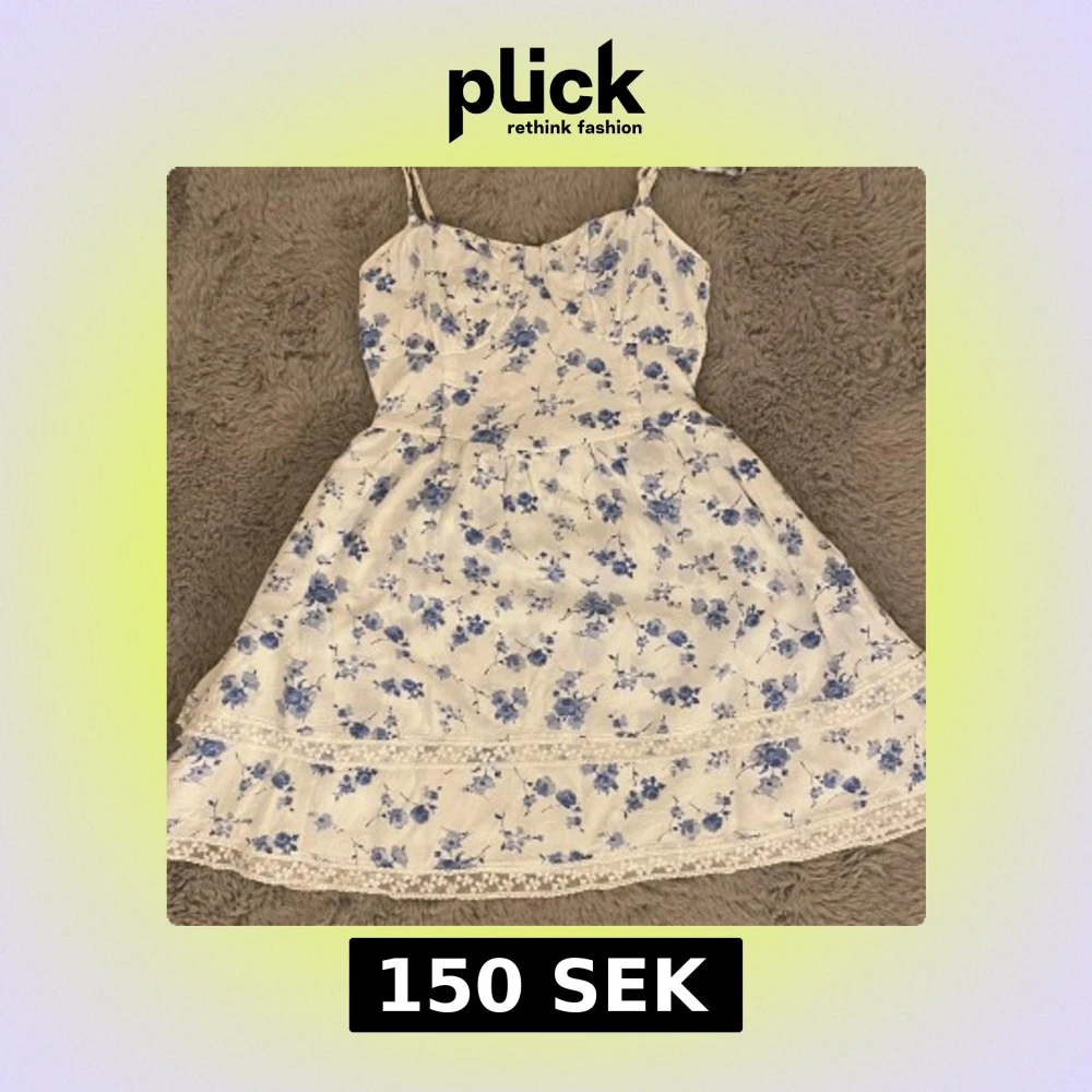 Söt vit klänning men blå blommor från Hollister. Klänningen har spetsdetalj längst ner. Den skulle vara perfekt till skolavslutningen eller till midsommar, men den funkar perfekt att ha på vanliga sommar dagar.