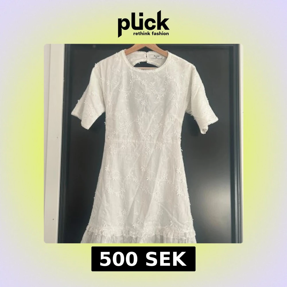 Superfin vit klänning från NA-KD med broderade blommor och volangdetalj nertill. Passar perfekt till studentklänning!